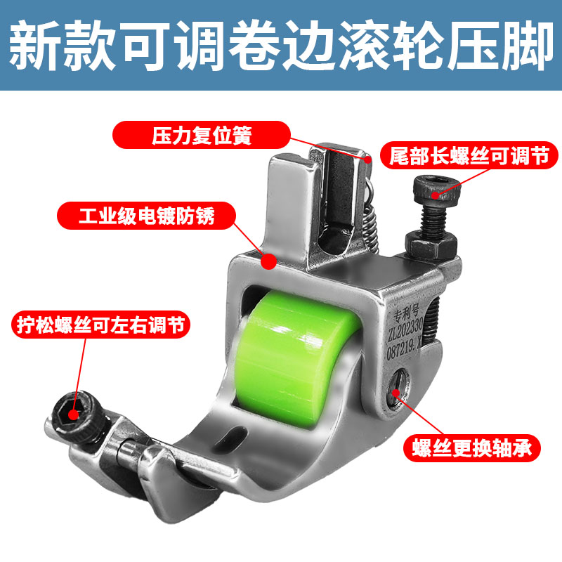 新款可调Q5滚轮卷边压脚电脑平车卷边专用防纽防皱卷边车缝平顺