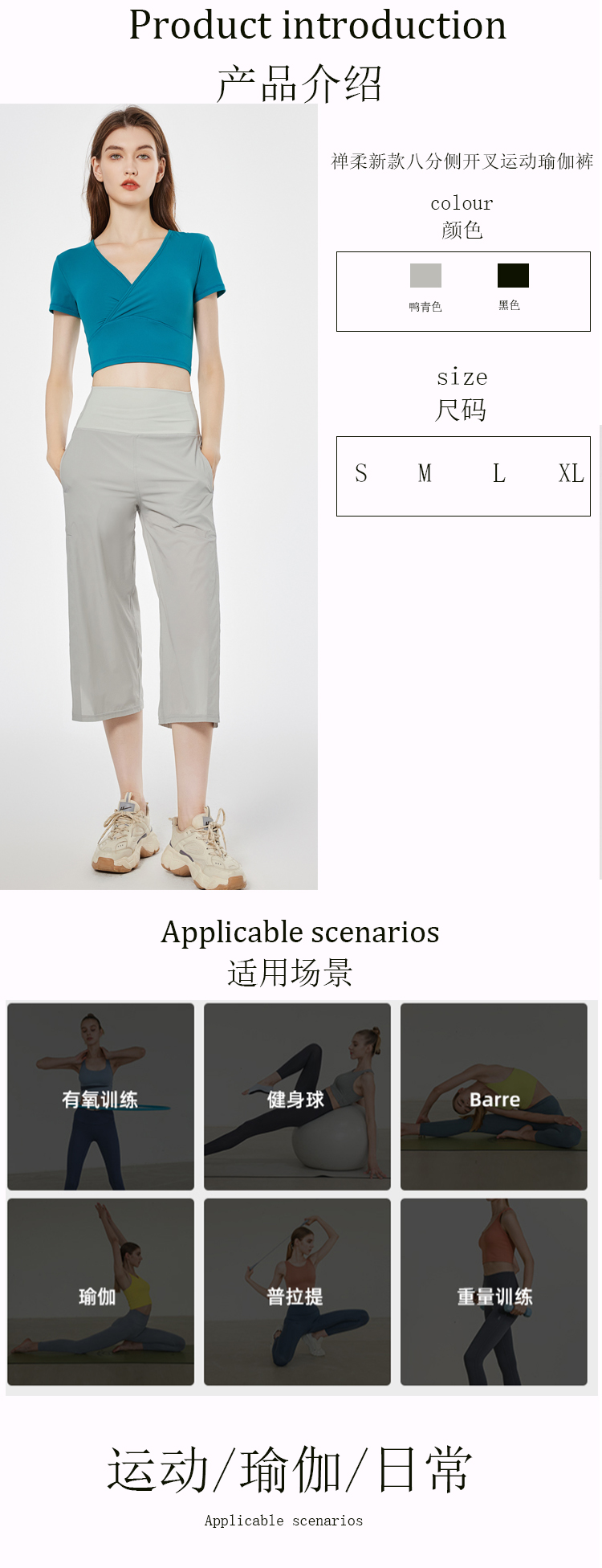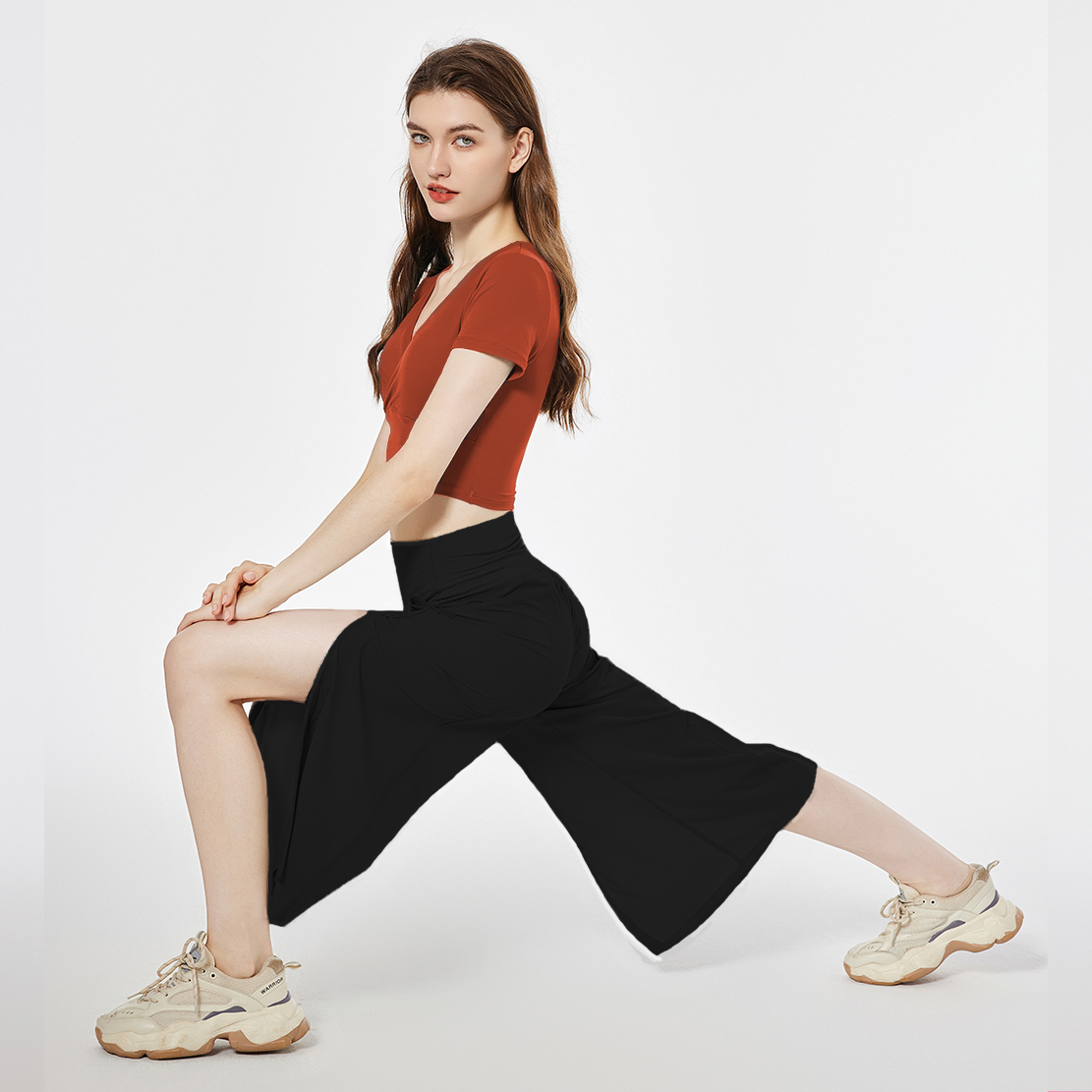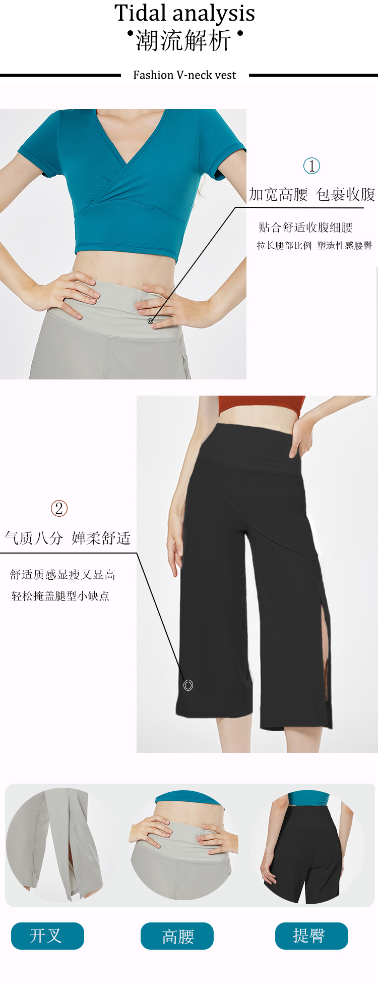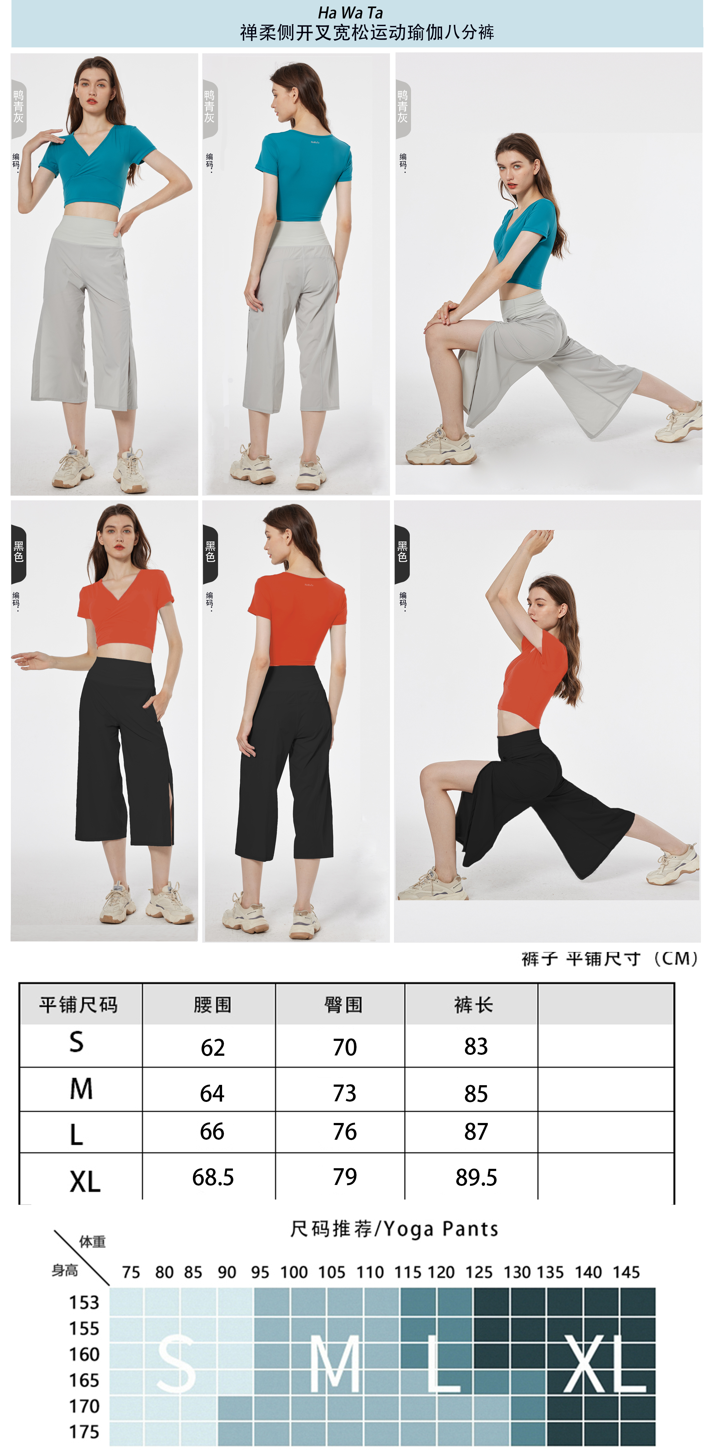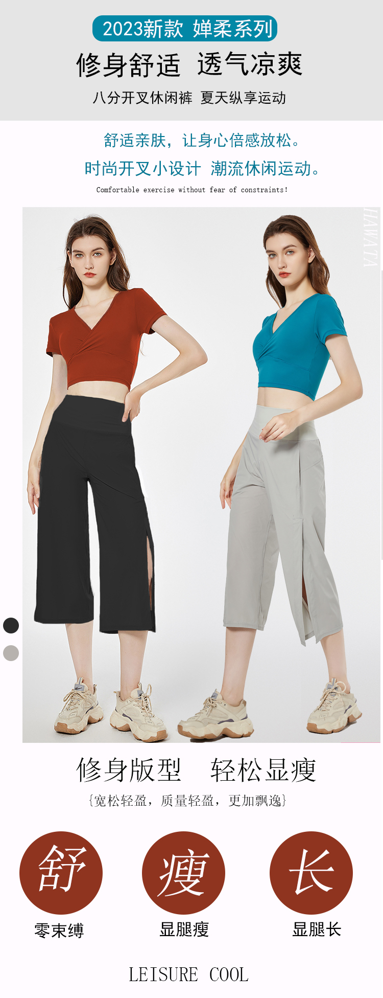 哈瓦塔禅柔新款八分侧开叉宽松运动瑜伽裤