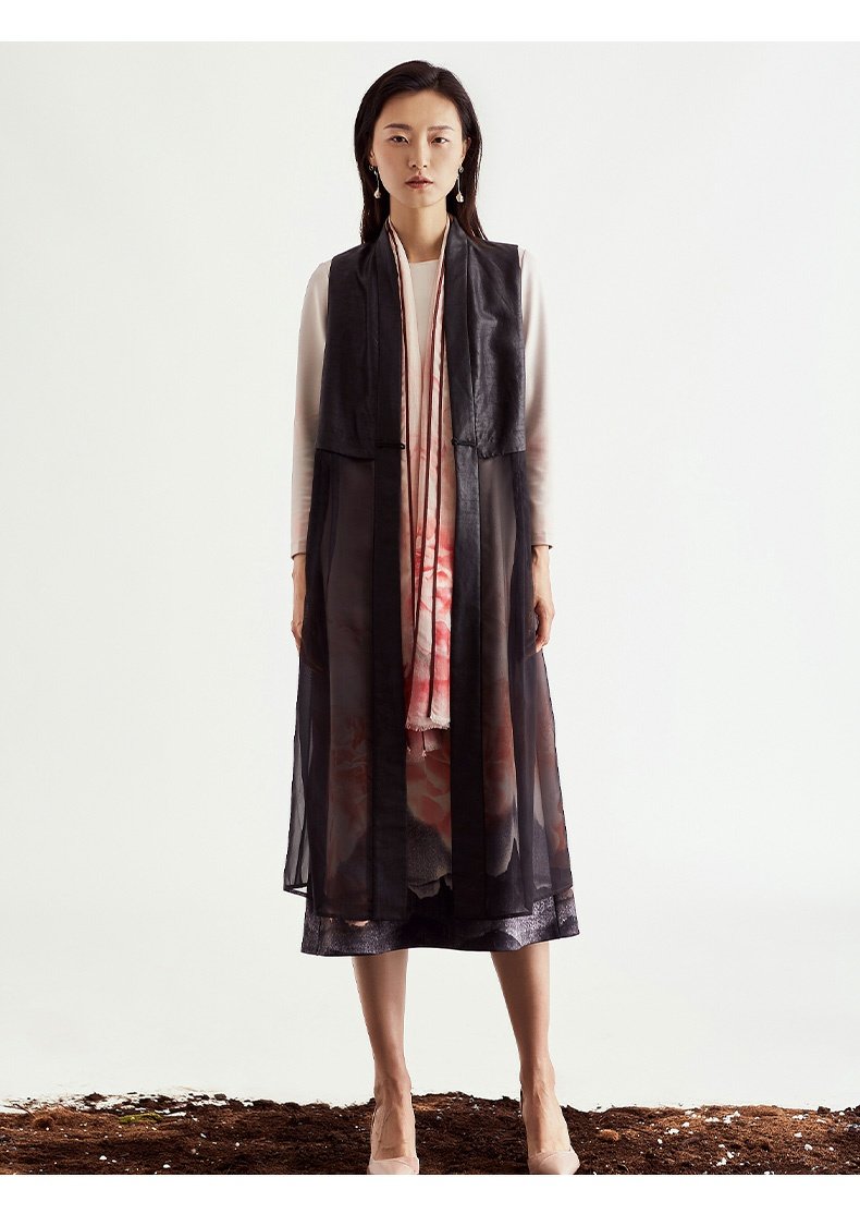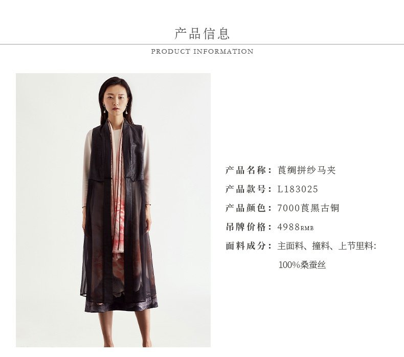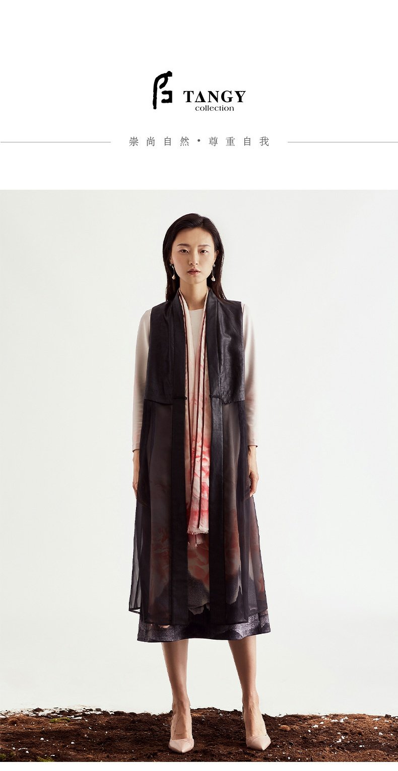 TANGY Collection/天意精品2021年夏季新品花誓系列莨绸拼纱马甲