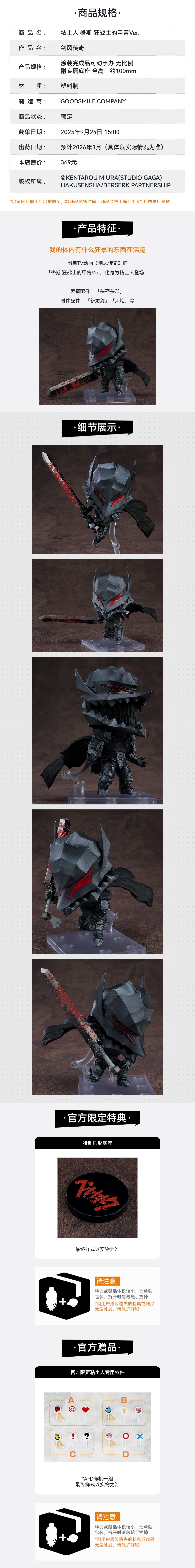【GSC补款】粘土人 格斯 狂战士的甲胄Ver. 剑风传奇 附官方限定特典