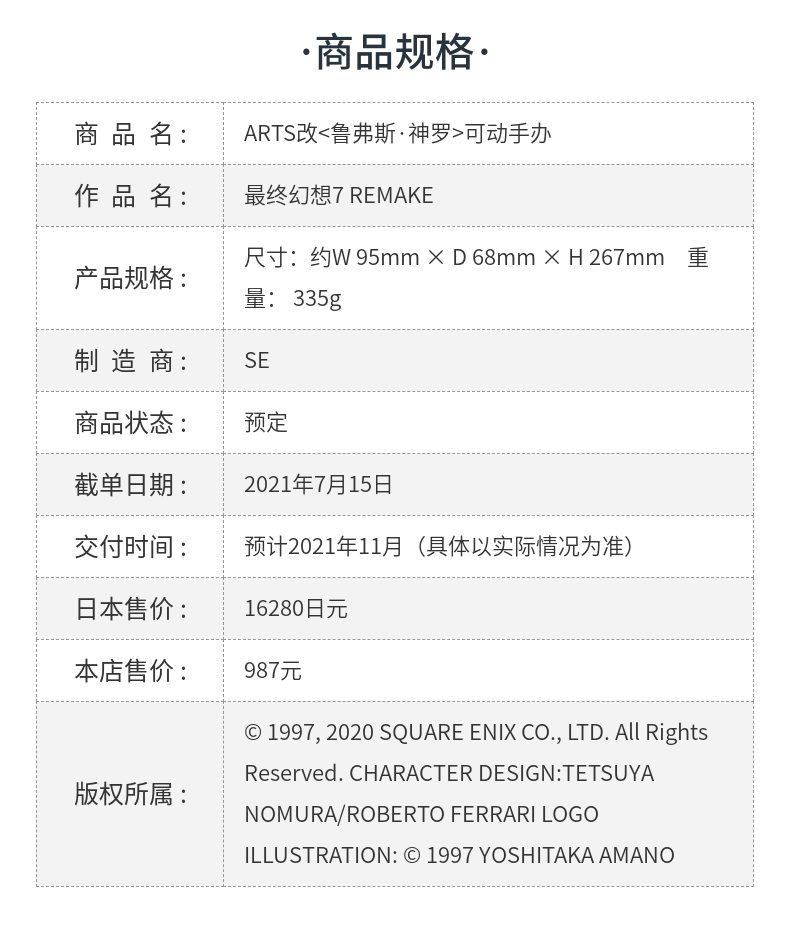 【GSC现货】PLAY ARTS改 鲁弗斯神罗可动手办 最终幻想7 REMAKE