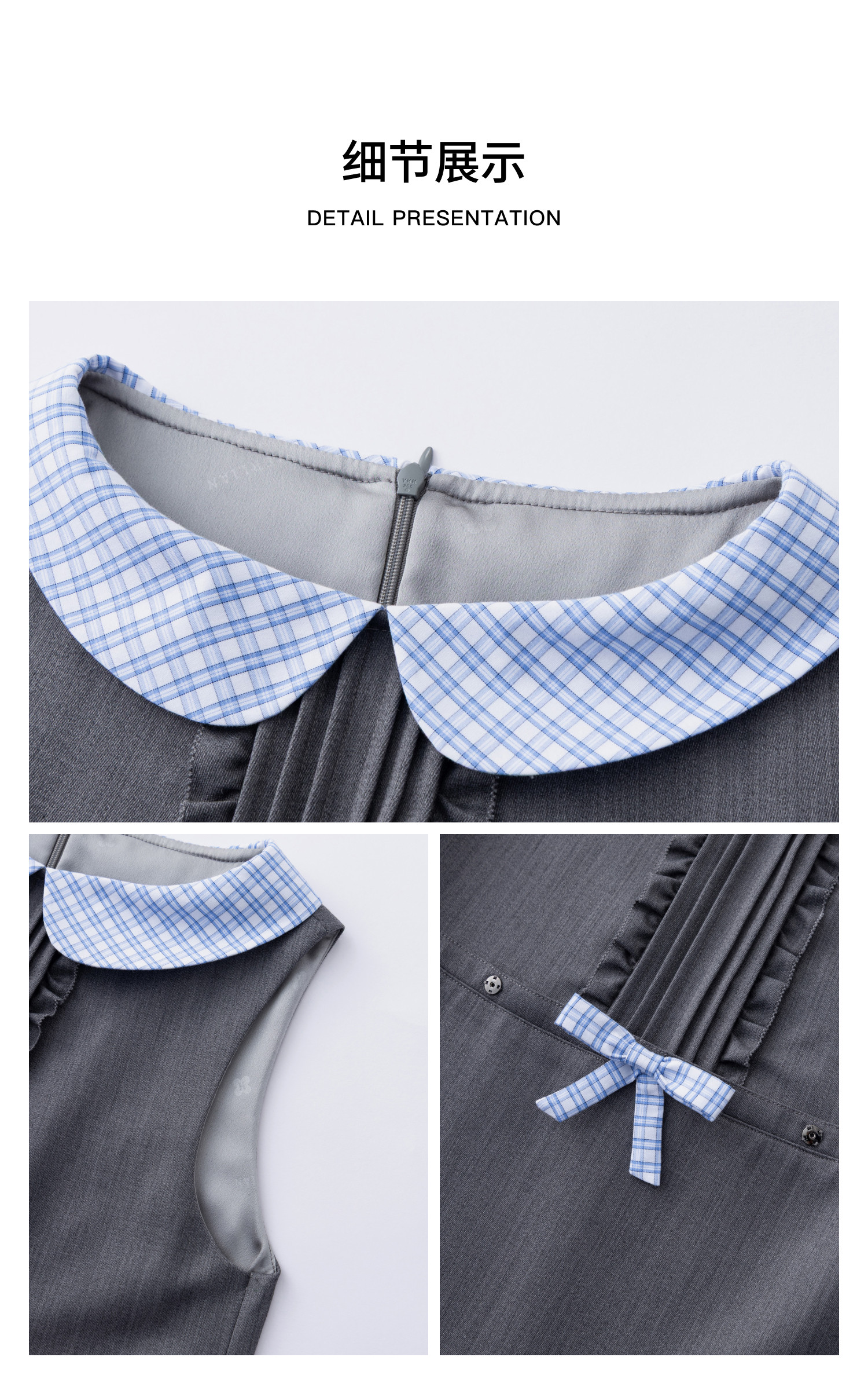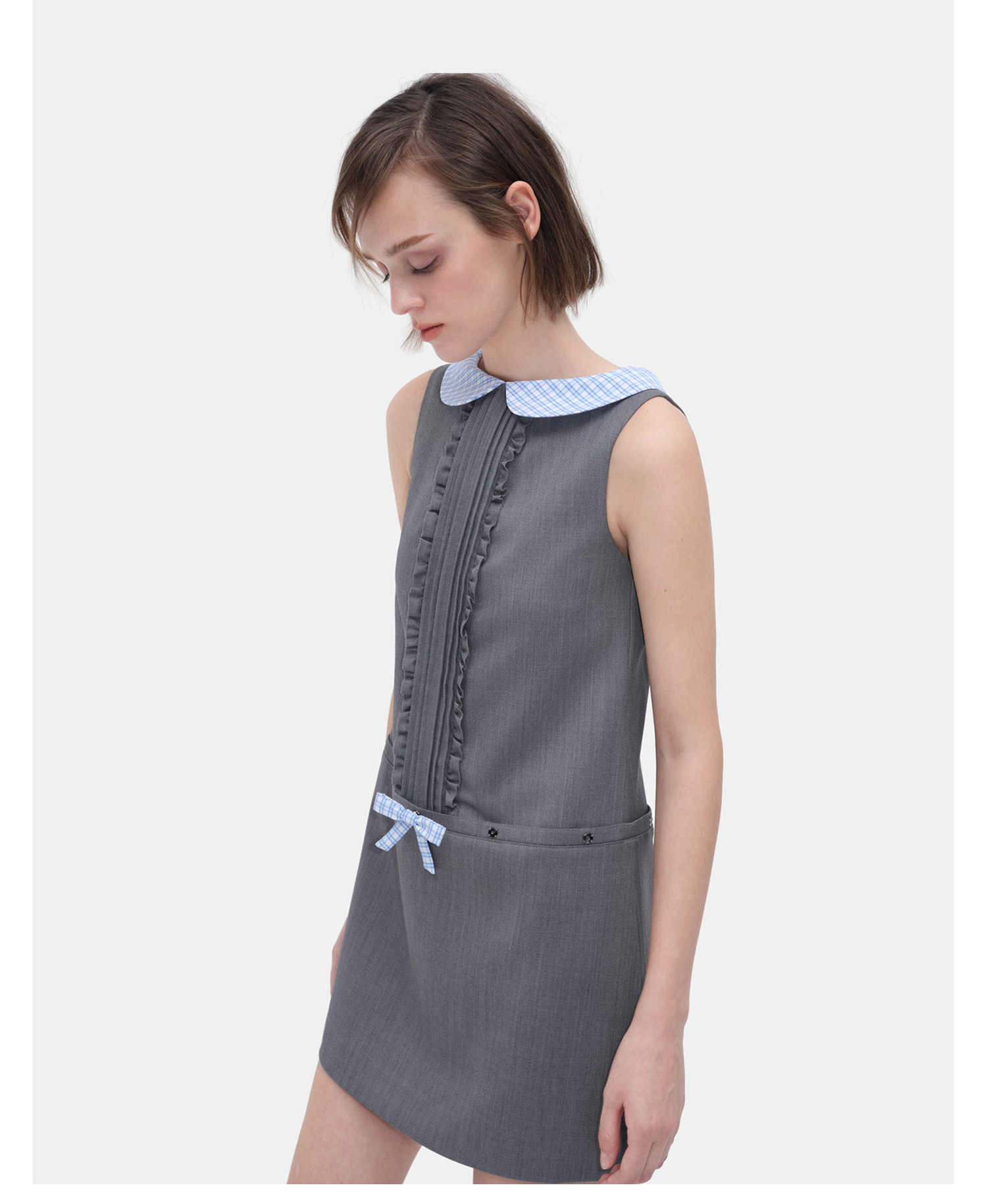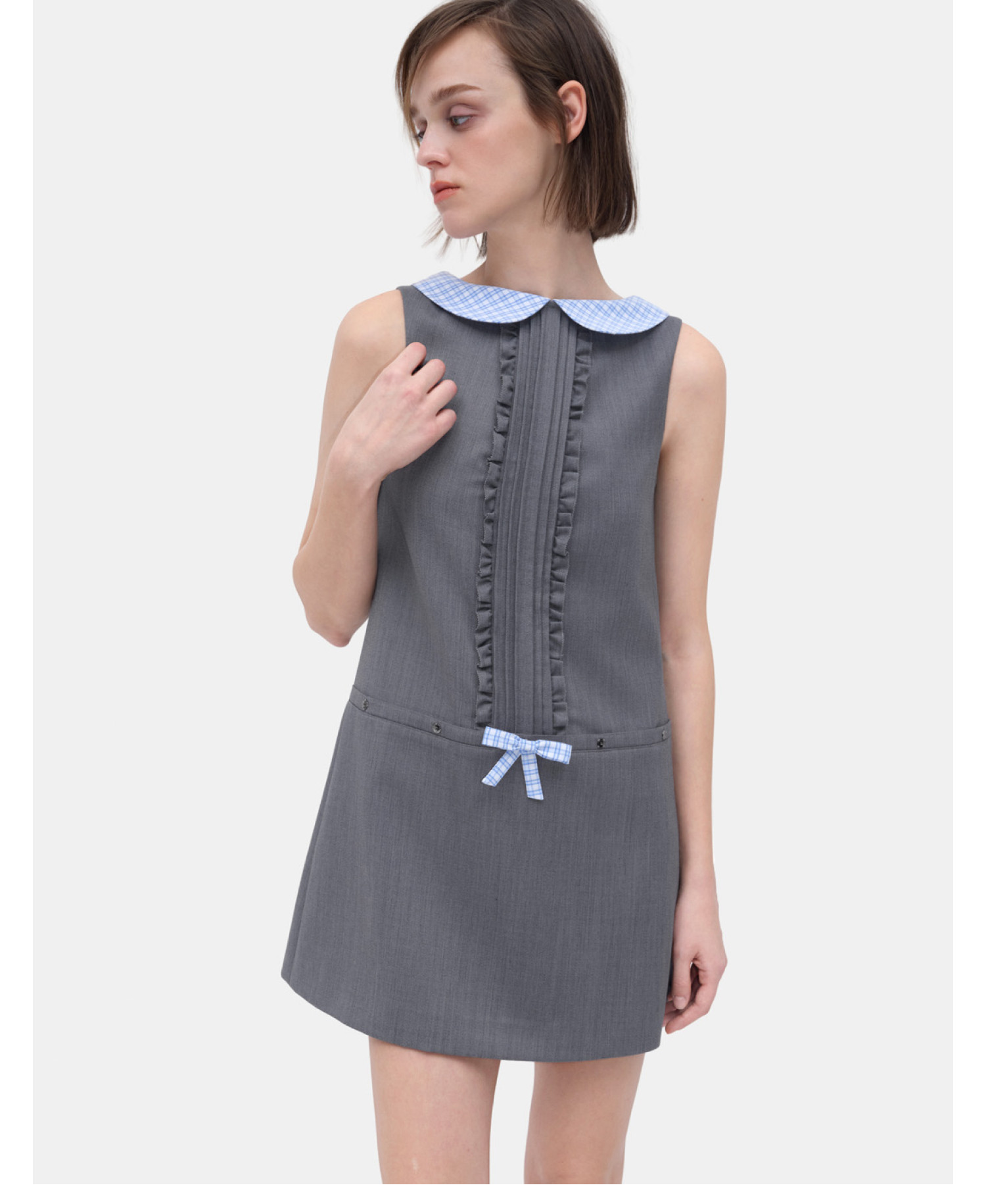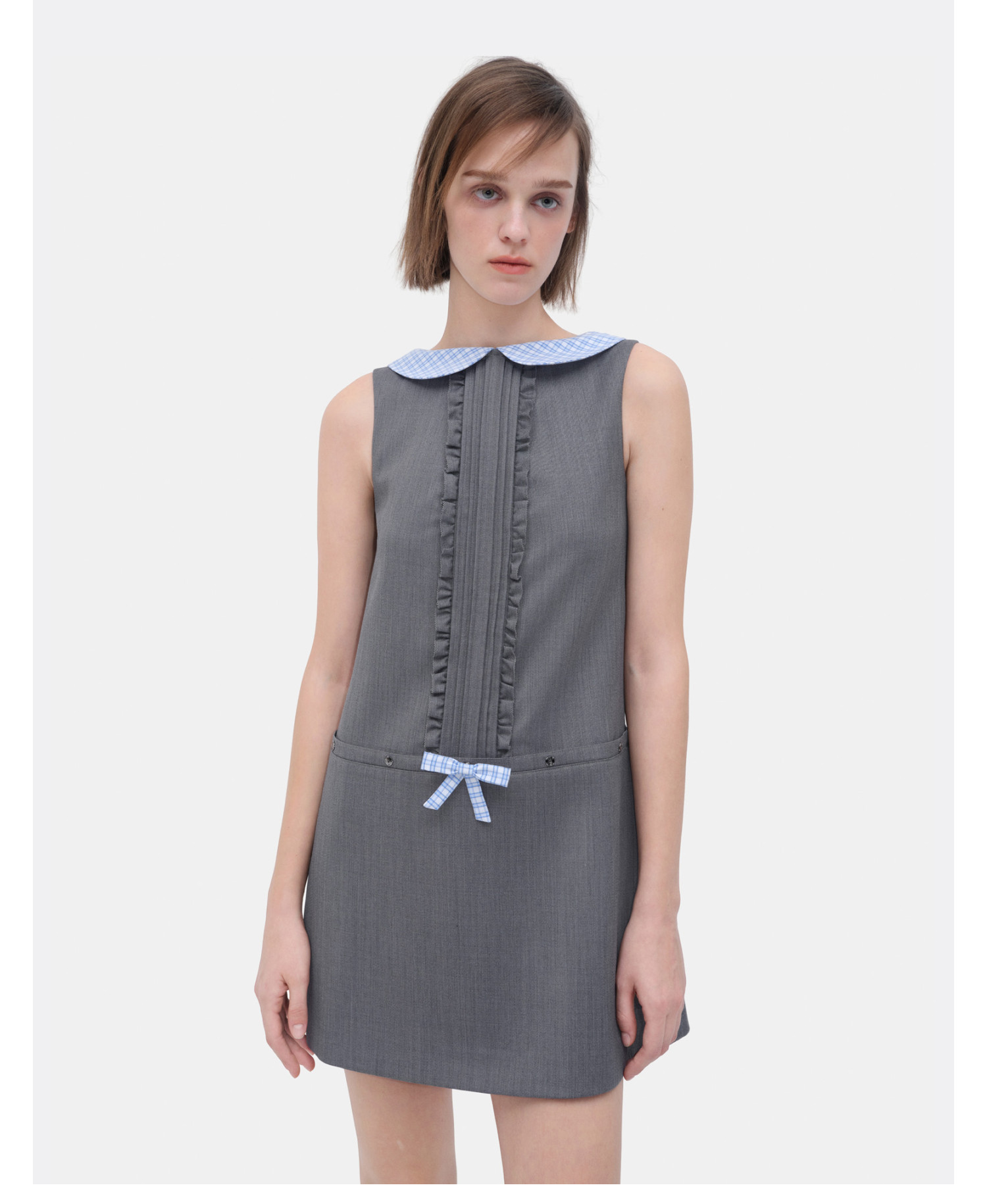 HERLIAN 2026年春夏新品蓝格娃娃领A字无袖连衣裙A字裙