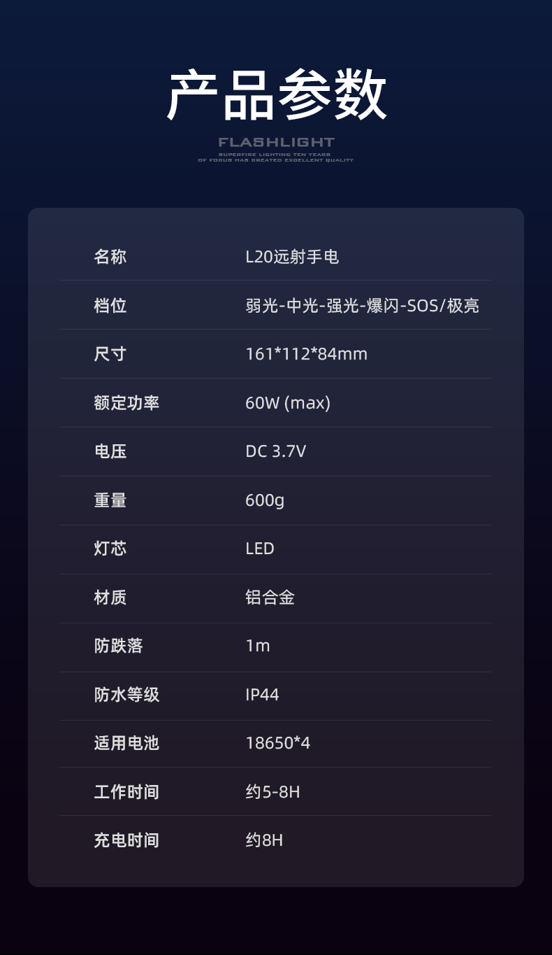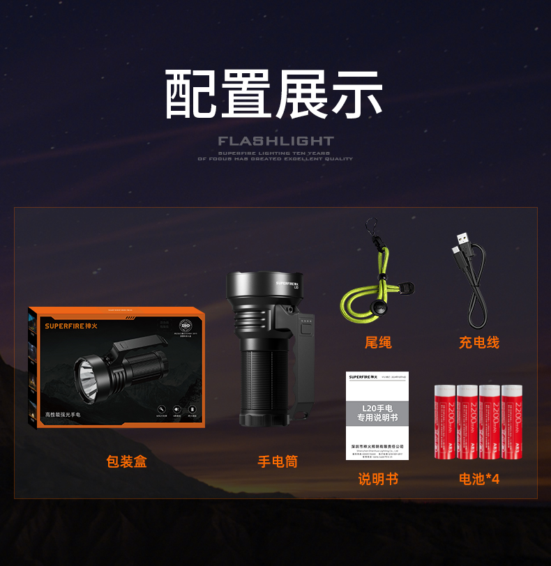 神火L20强光手电高亮远射大功率户外照明充电长续航