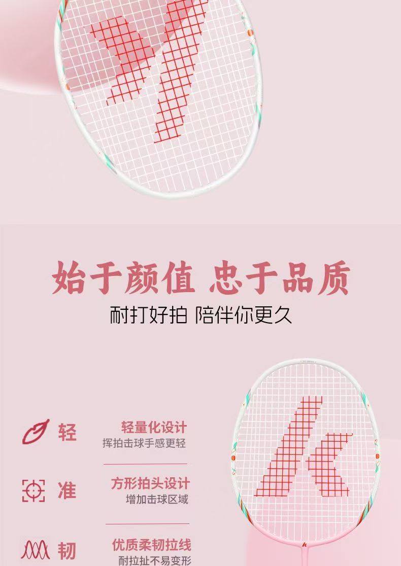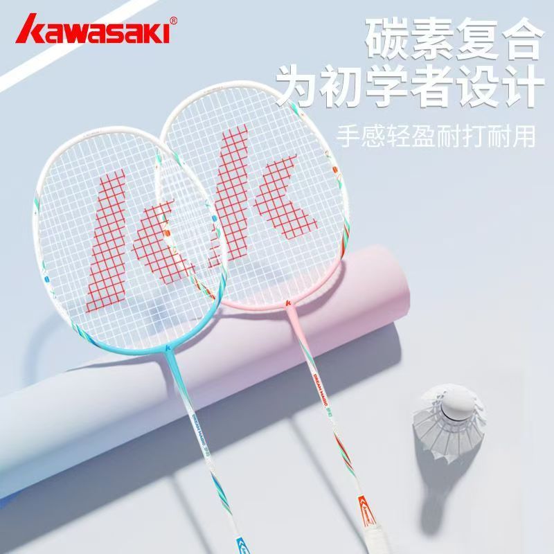 川崎羽毛球拍碳素纤维比赛超轻进攻耐打学生初学者单双拍开学必.备