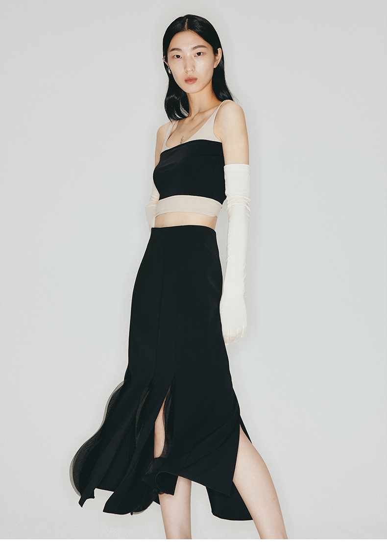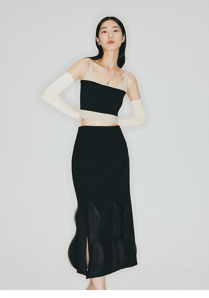 【夜孔雀】层裁片不规则开衩立体薄纱拼接半裙/230003