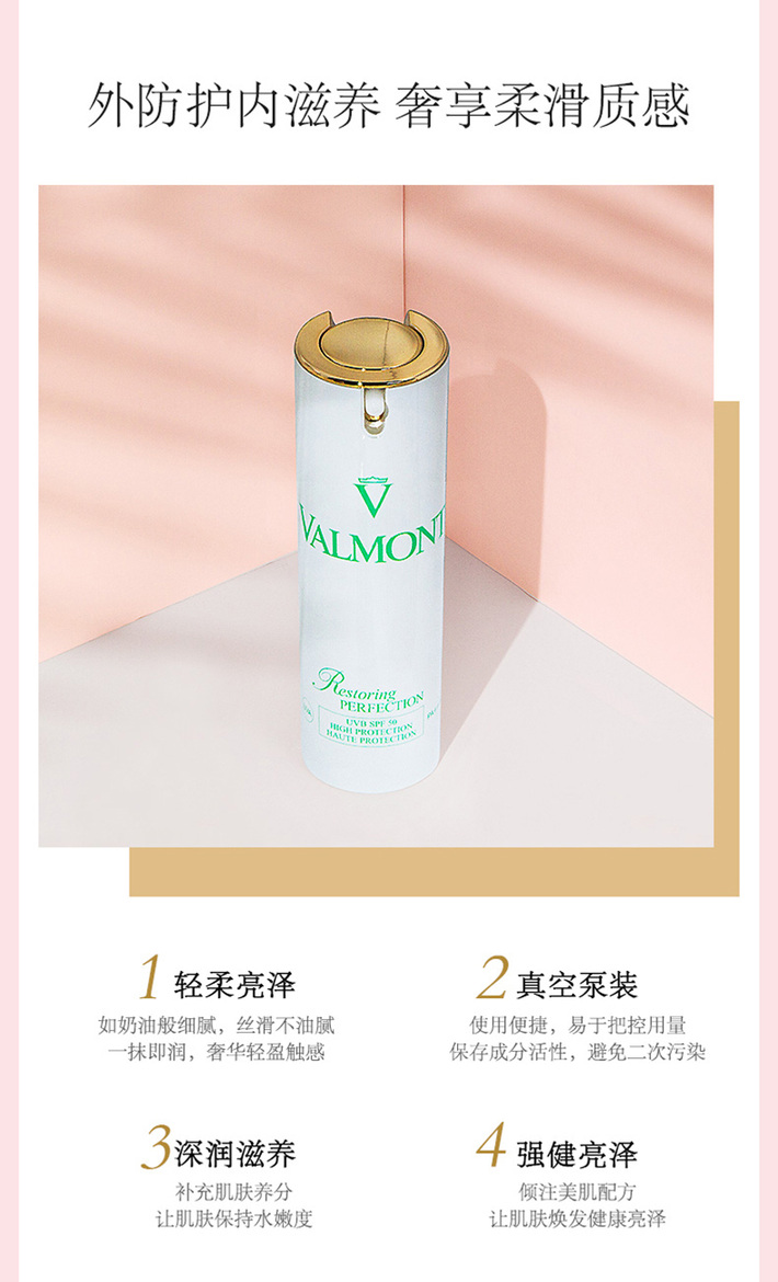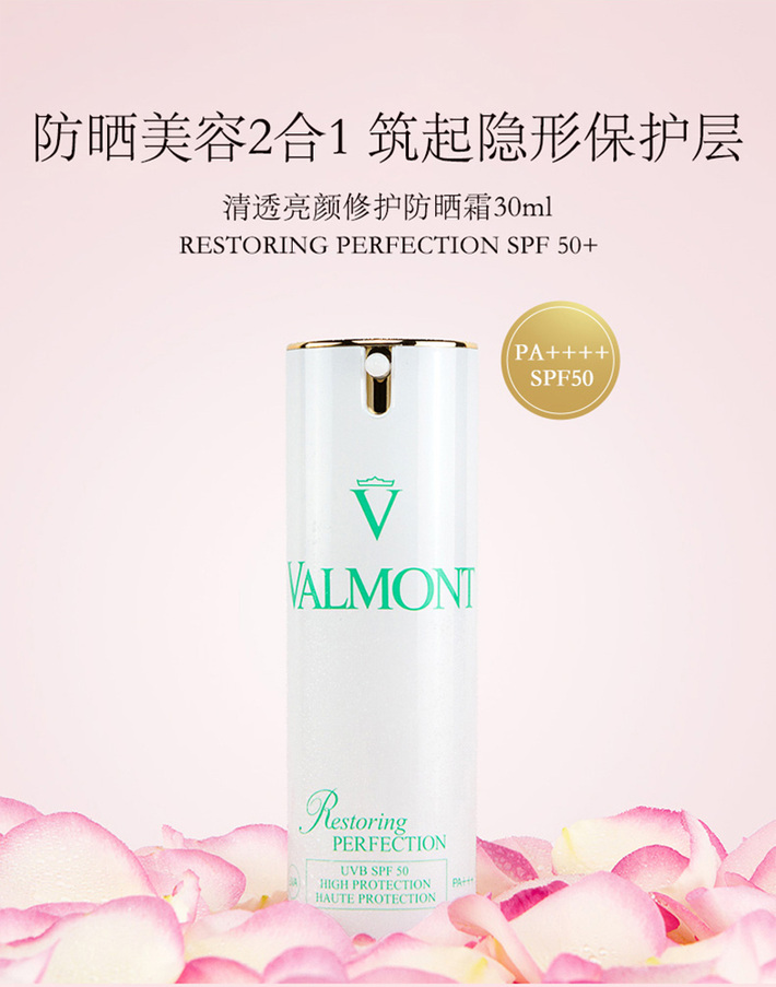 法尔曼VALMONT 清透亮颜修护方晒霜30ML SPF50 清爽不腻高倍防晒