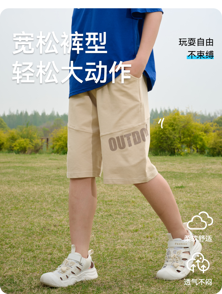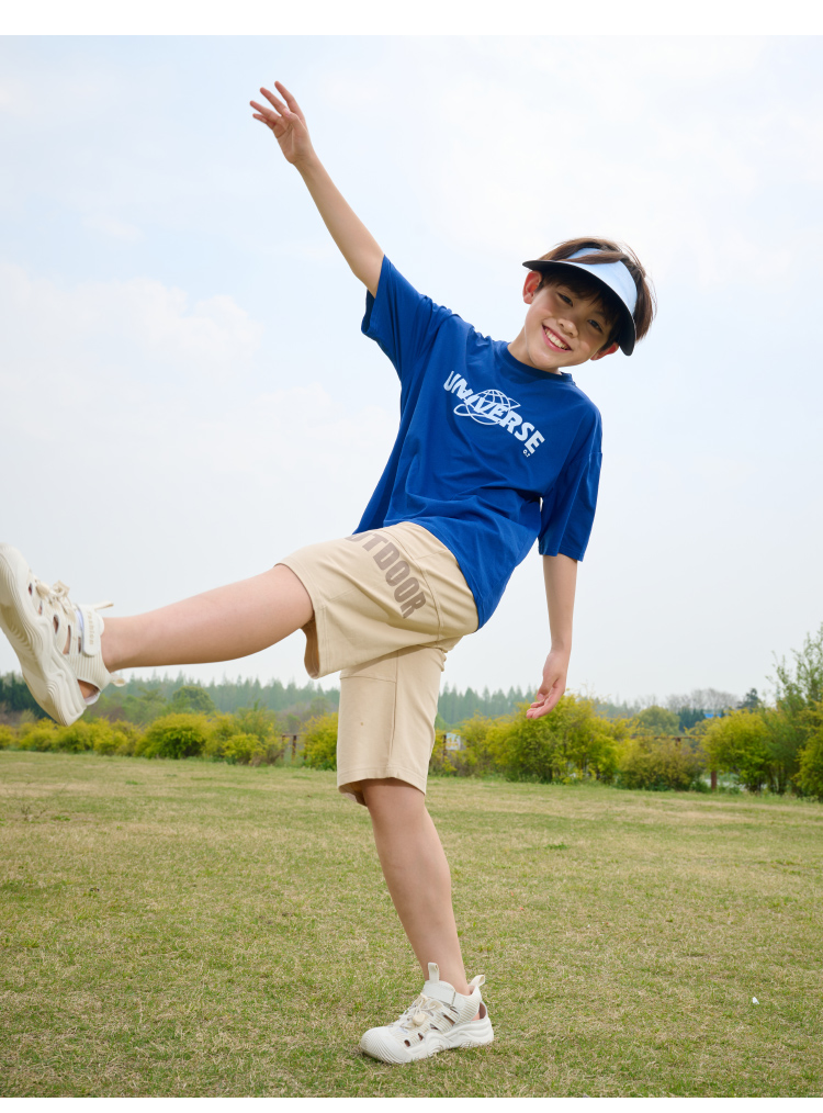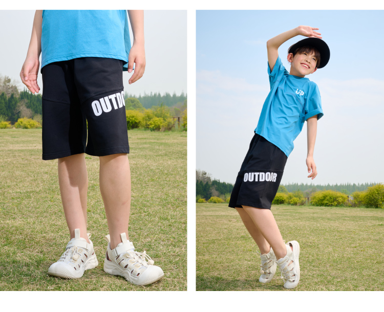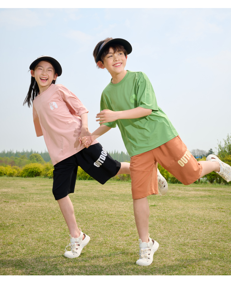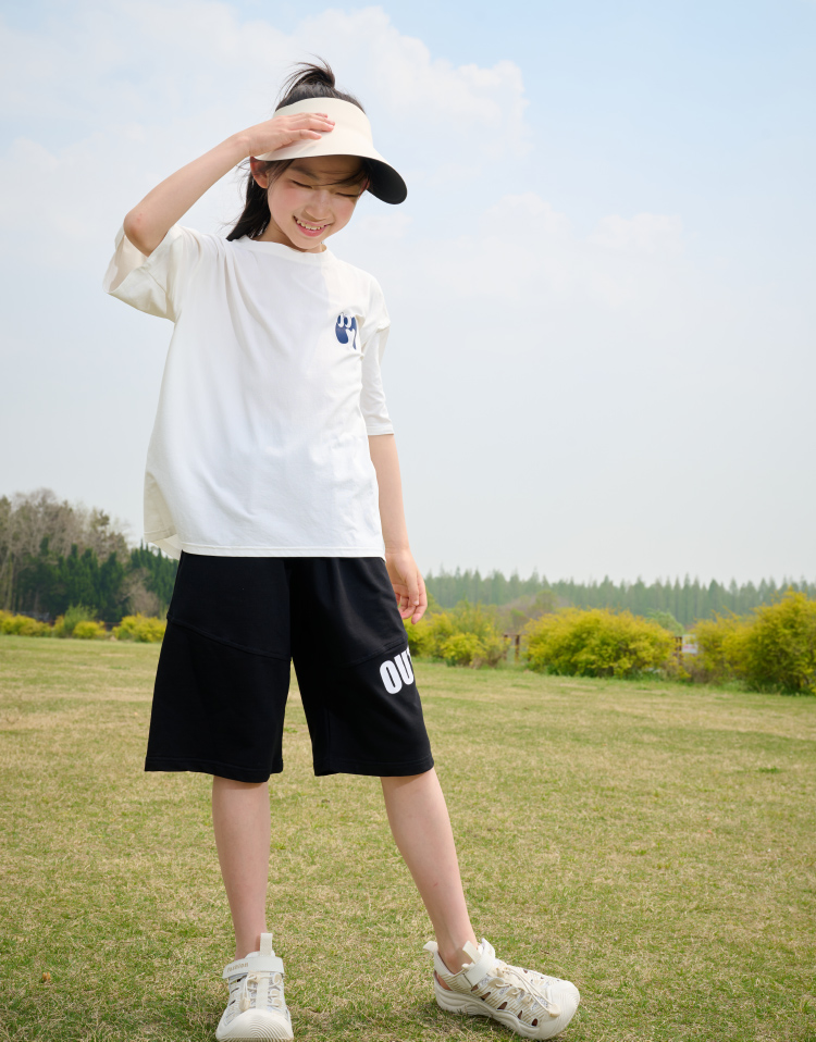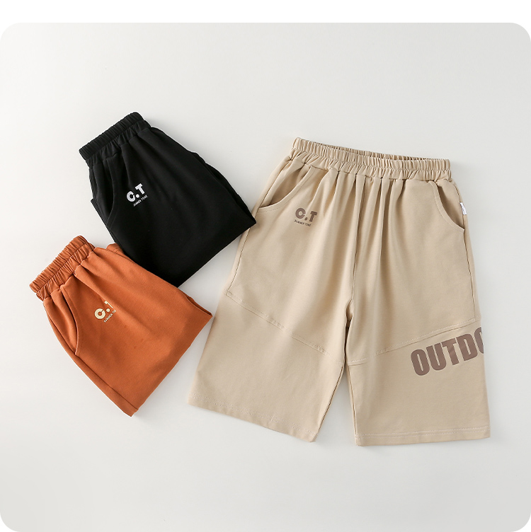 【透气速干】棉花堂2025年夏款C.T英文印花童装针织五分裤F251187