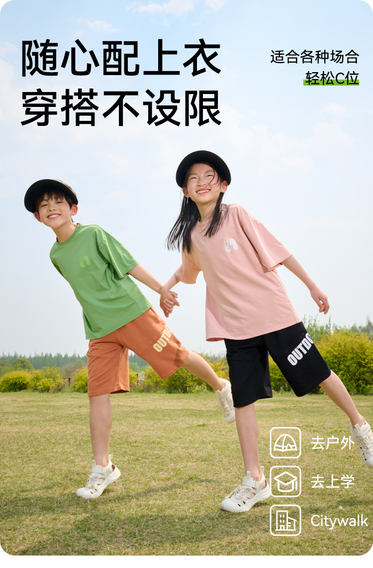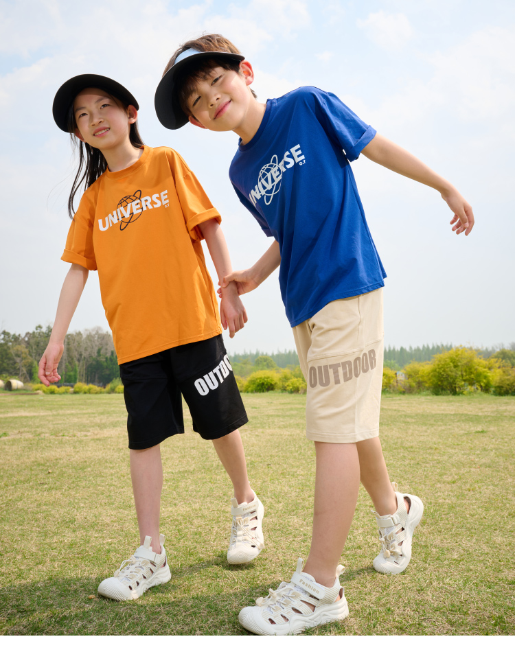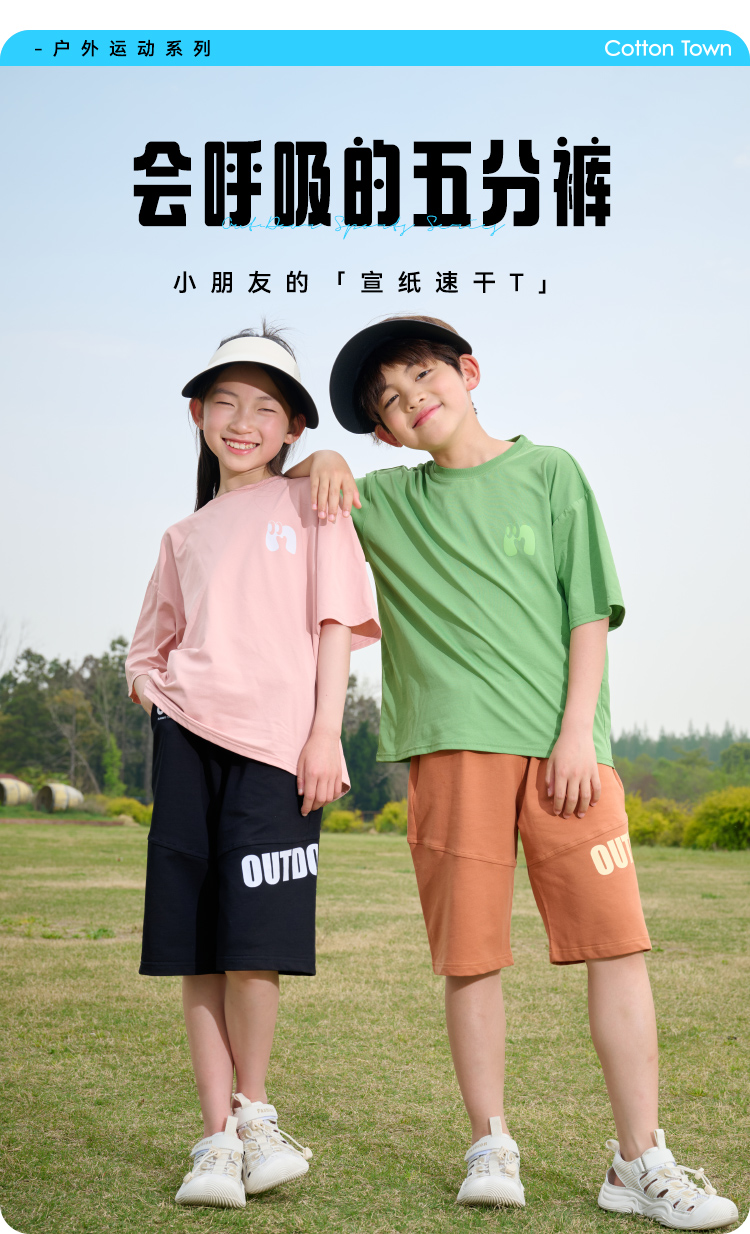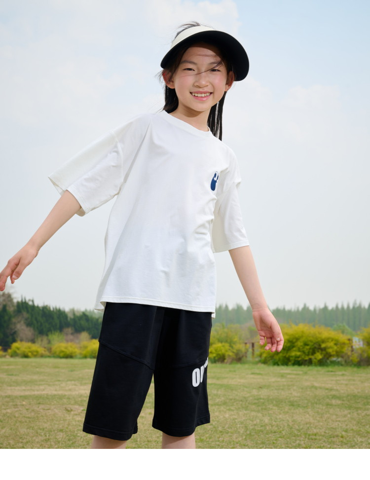 【透气速干】棉花堂2025年夏款C.T英文印花童装针织五分裤F251187