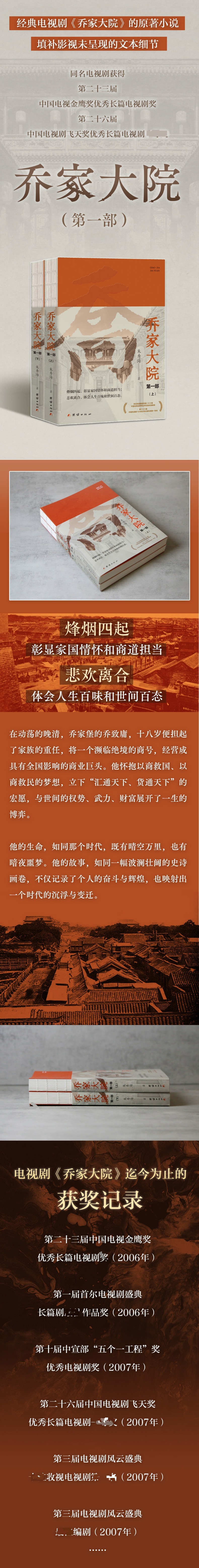 《乔家大院(第一部)》以晚清为背景,通过乔致庸的奋斗历程,展现了一个家族的兴衰荣辱与一个时代的风云变幻。作品情节紧凑,人物形象鲜明,语言生动,具有很强的可读性和感染力。书中既有对历史的深刻洞察,也有对人性的细腻刻画,是一部兼具思想性与艺术性的文学作品。无论是对历史感兴趣的读者,还是喜欢精彩故事的读者,都能从本书中获得独特的阅读体验。