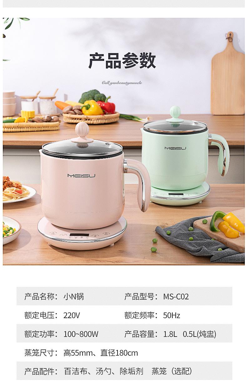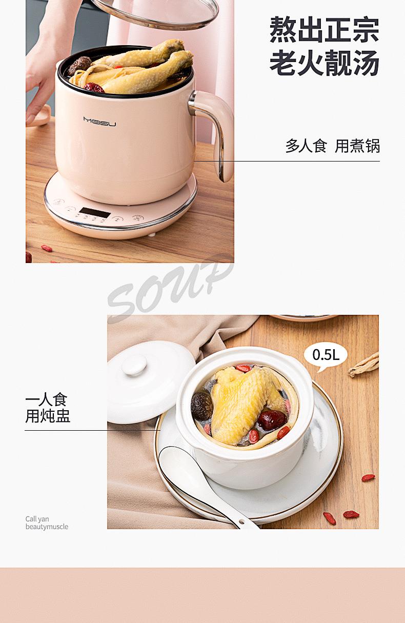 美苏办公室小电锅煮面神器分体式小火锅电煮多功能电热锅宿舍学生