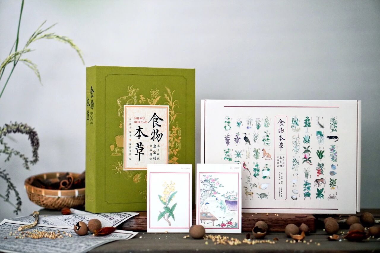 [专享4大福利】《食物本草:来自明代皇室的饮膳图谱》 赠礼1:特制布面涵套, 赠礼2:满版烫金工艺, 赠礼3:藏书票2张, 赠礼4:定制彩绘礼盒,