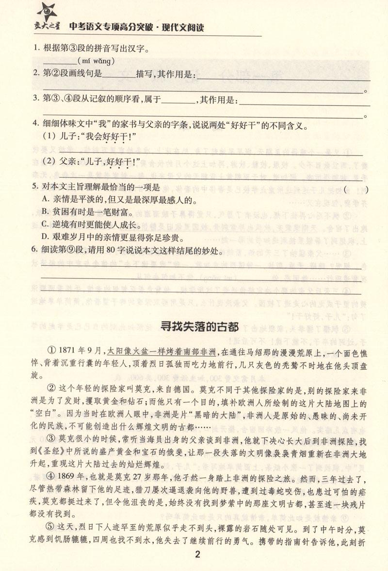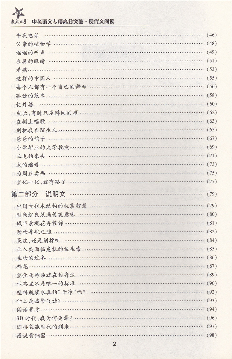 交大之星 中考语文专项高分突破 现代文阅读 上海交通大学出版社 初三中考语文总复习满分冲刺资料 记述文说明文挑战满分星级训练