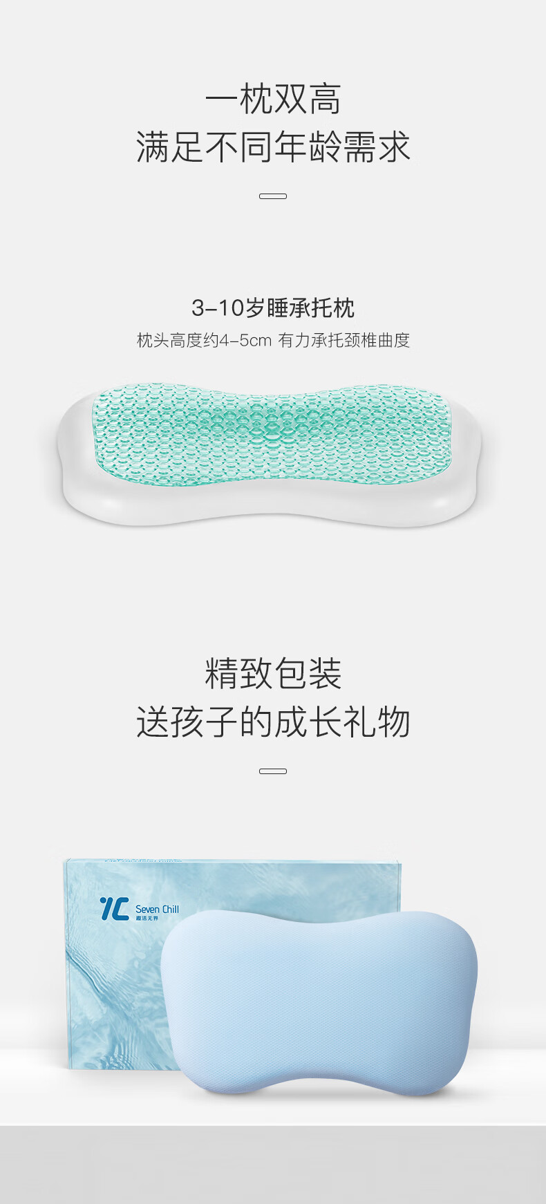 七西7C家用儿童睡眠枕头枕芯记忆棉果冻凝胶带枕套舒眠儿童枕(3-10岁)