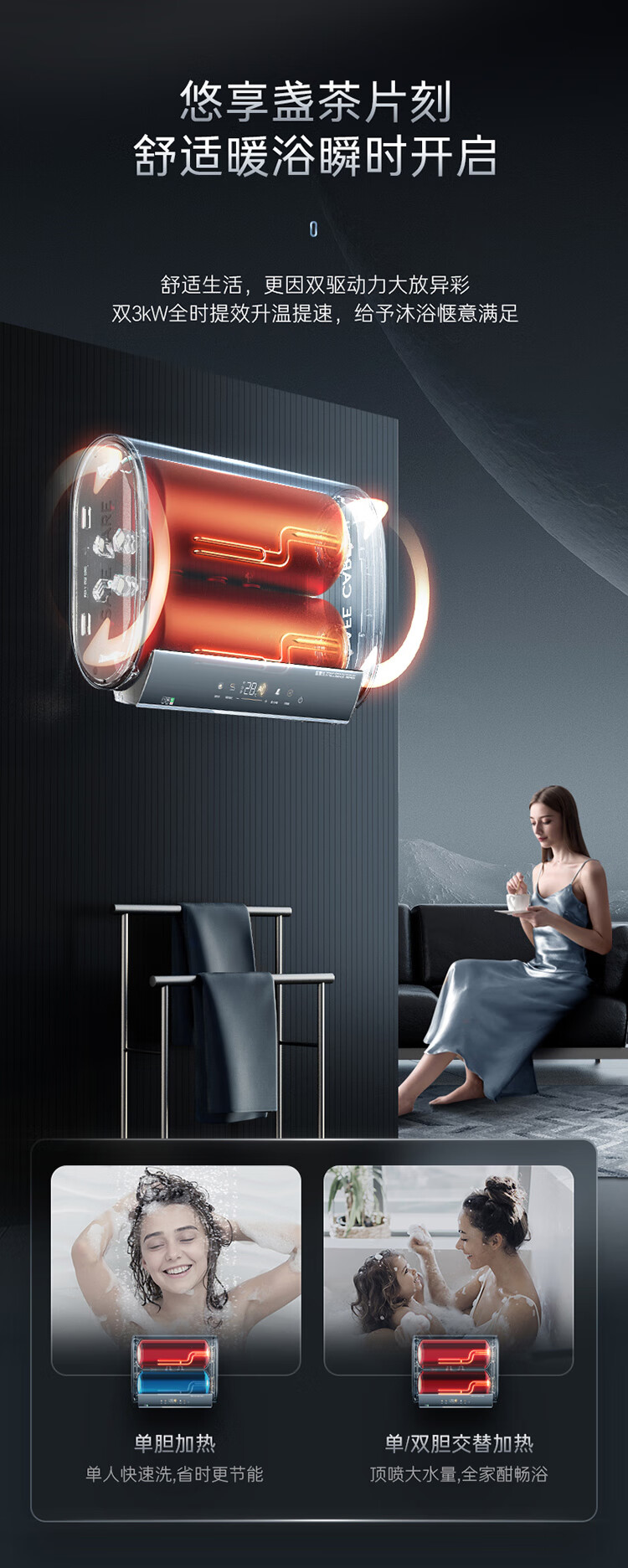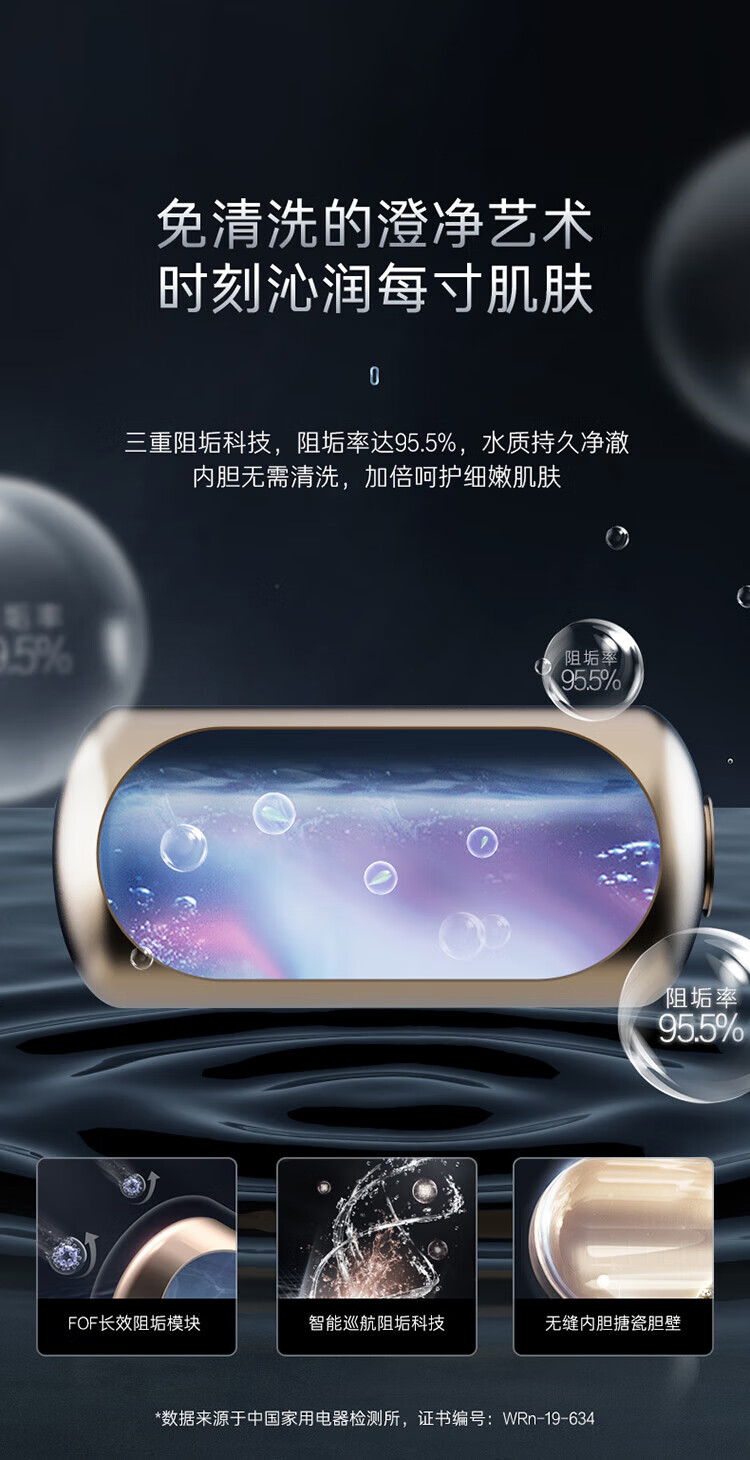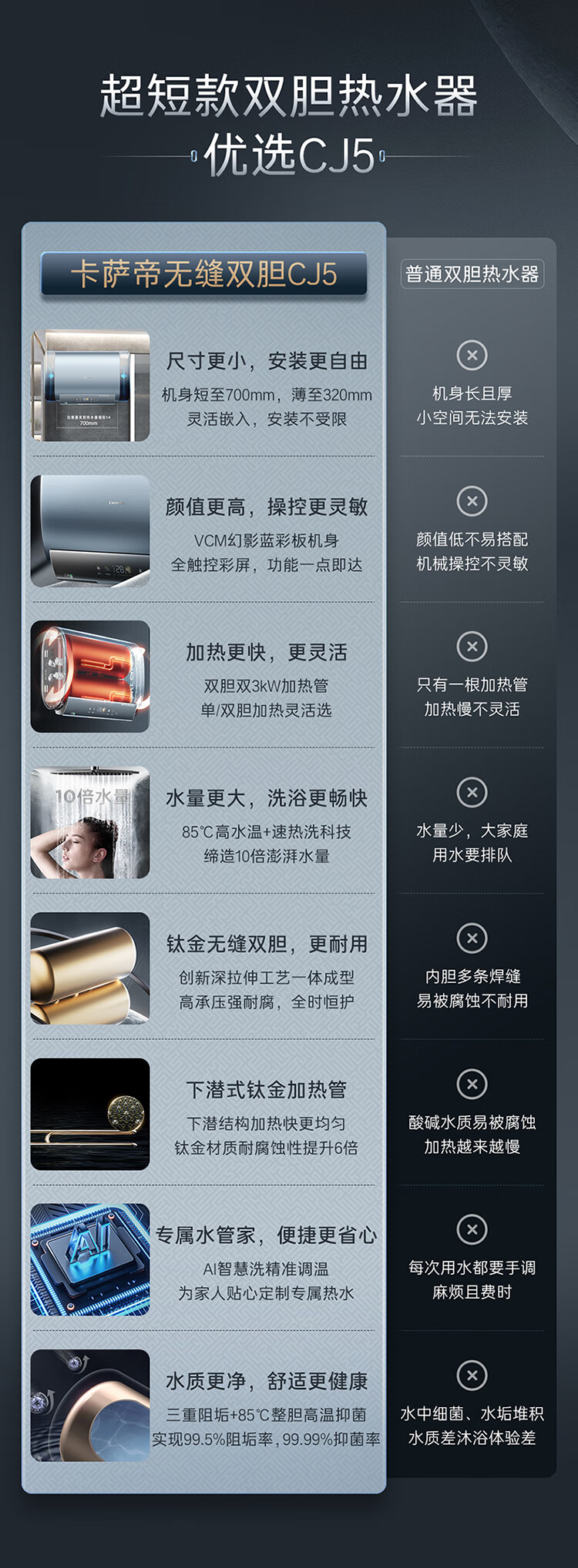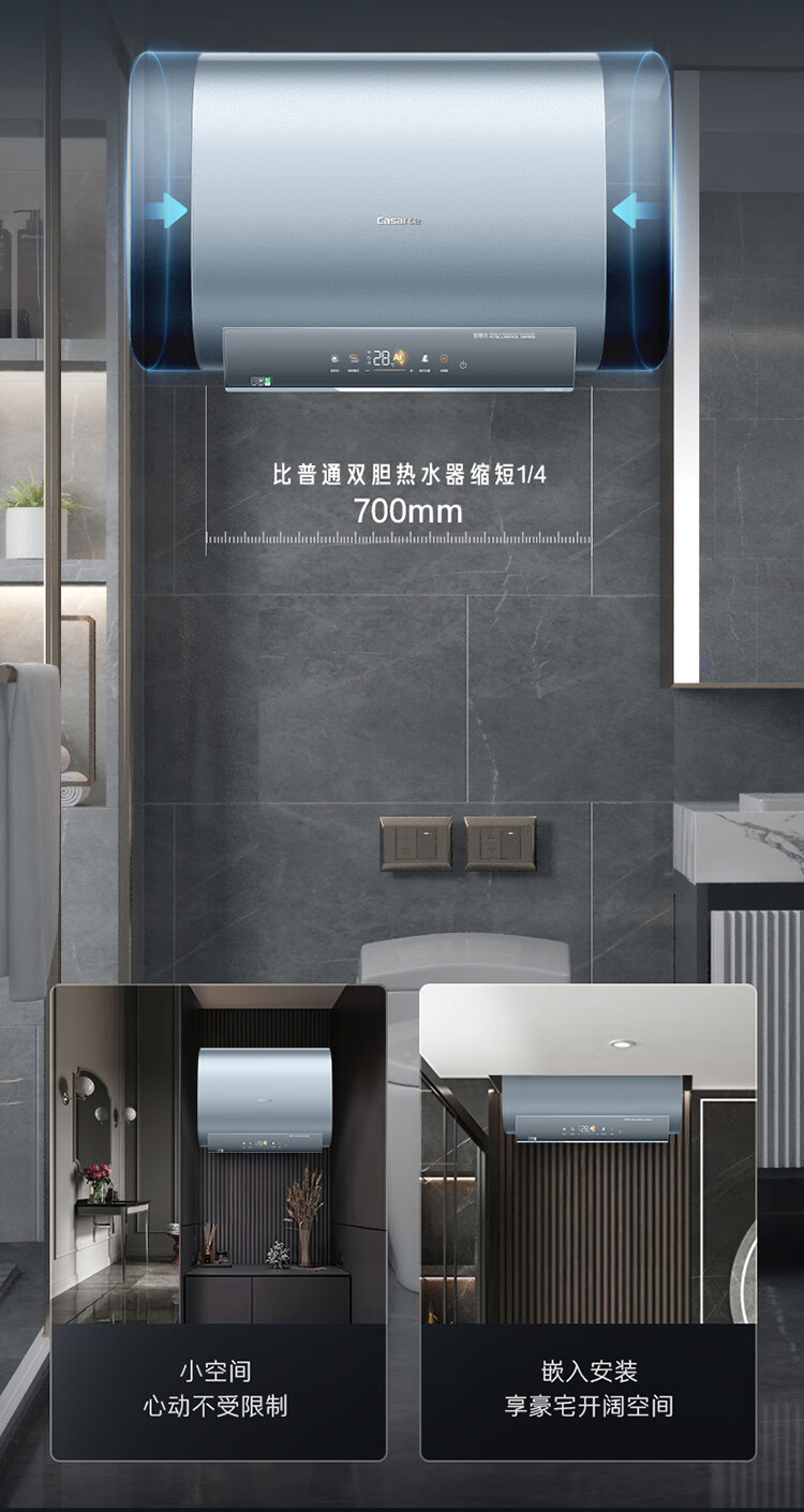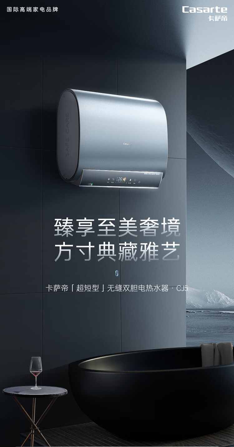 【卡萨帝CEC6005-CJ5(U1)】卡萨帝(Casarte)60升电热水器扁桶双胆纤薄机身10倍水量全彩大屏钛金无缝双胆