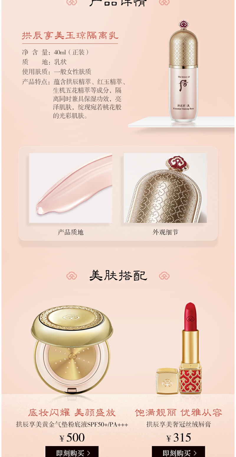 【YZ】拱辰享美玉琼隔离乳40ml 妆前隔离遮瑕