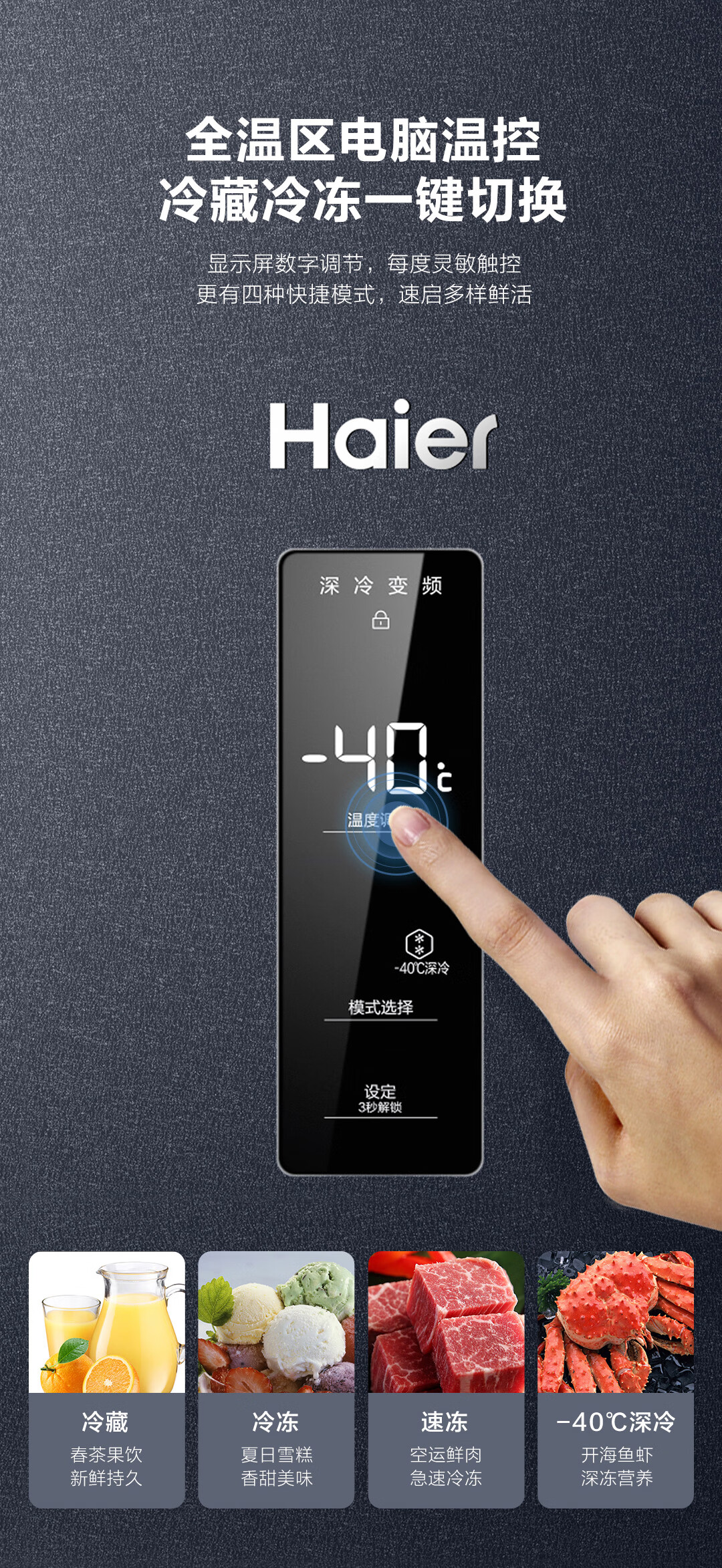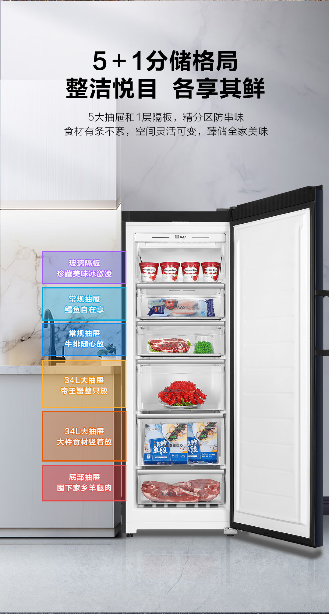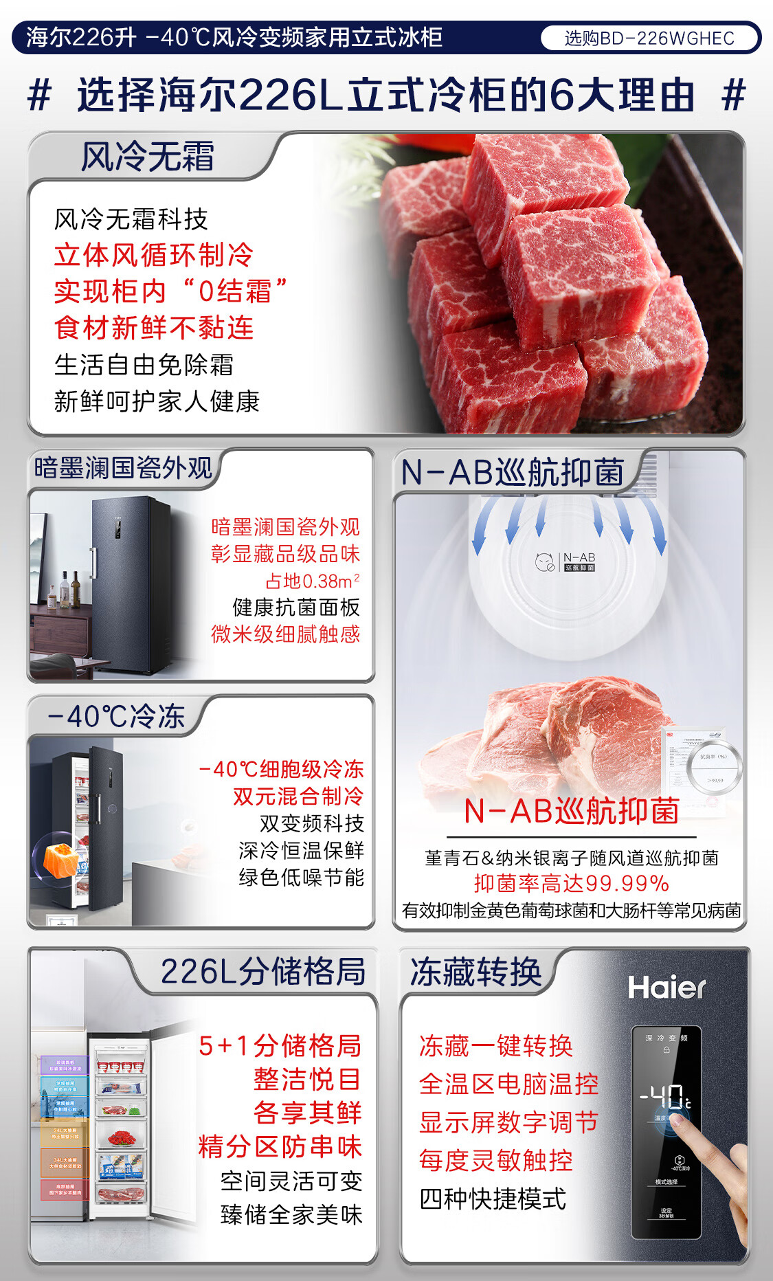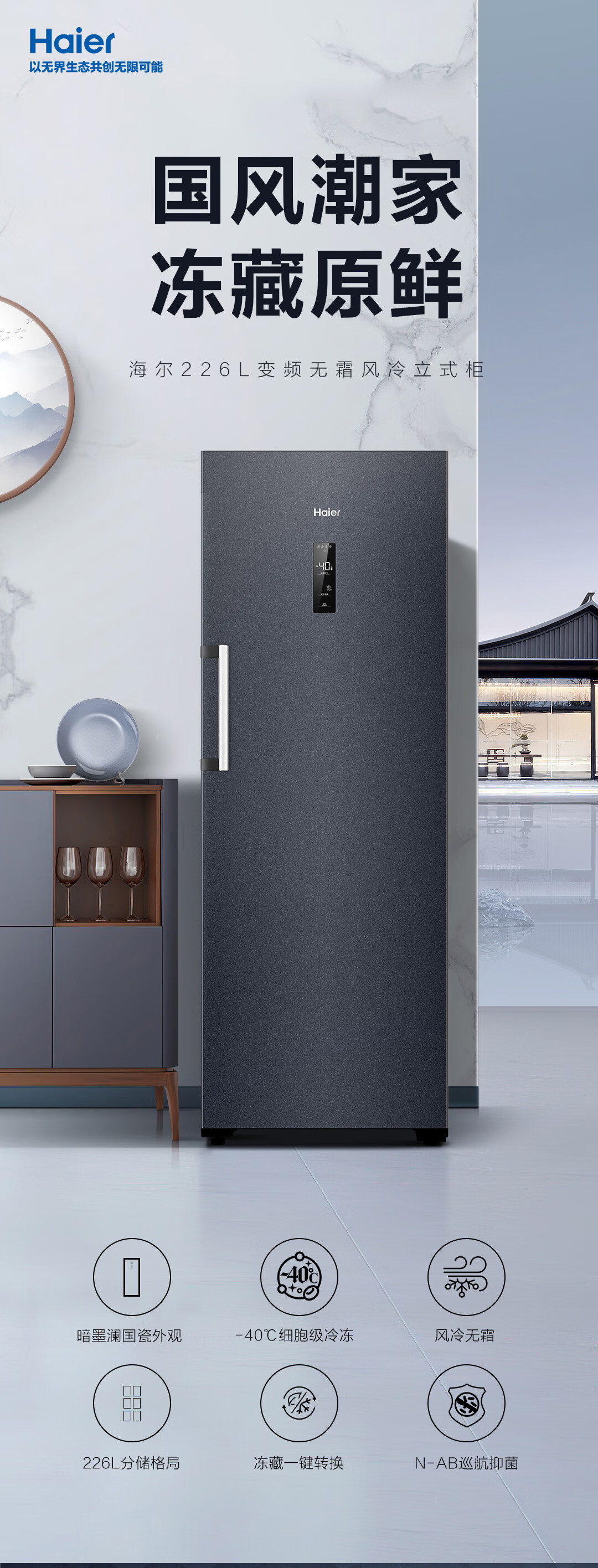 海尔(Haier) 226升 -40℃一级能效冷变频家用立式冰柜冷藏冷冻柜冷柜小冰柜家用小型冰箱BD-226WGHEC以旧换新