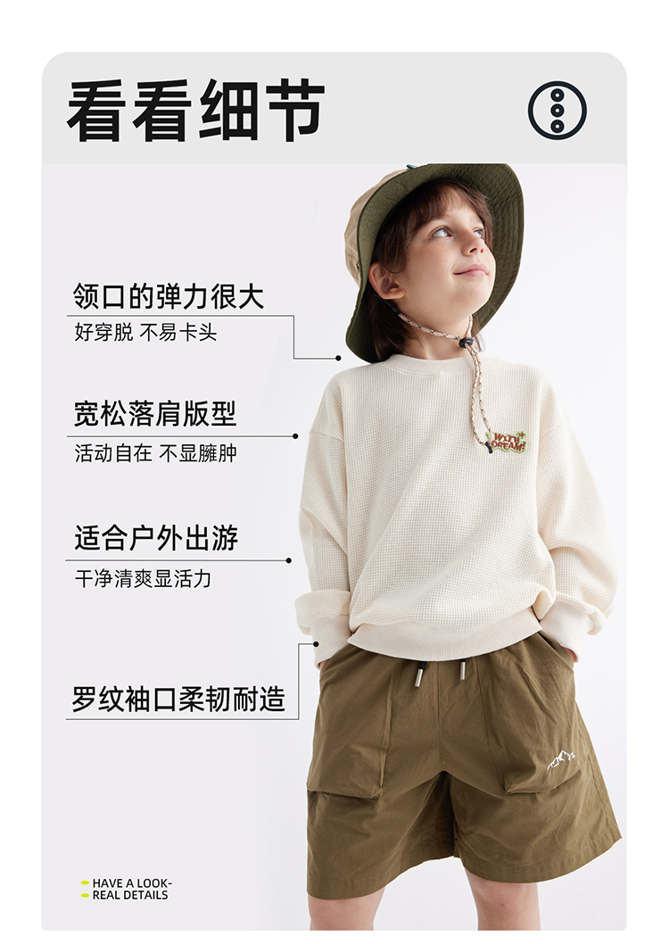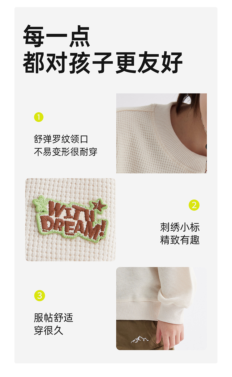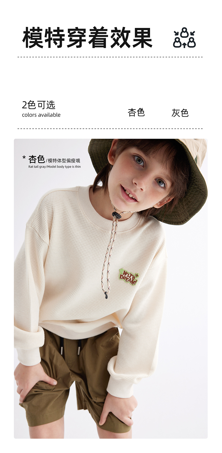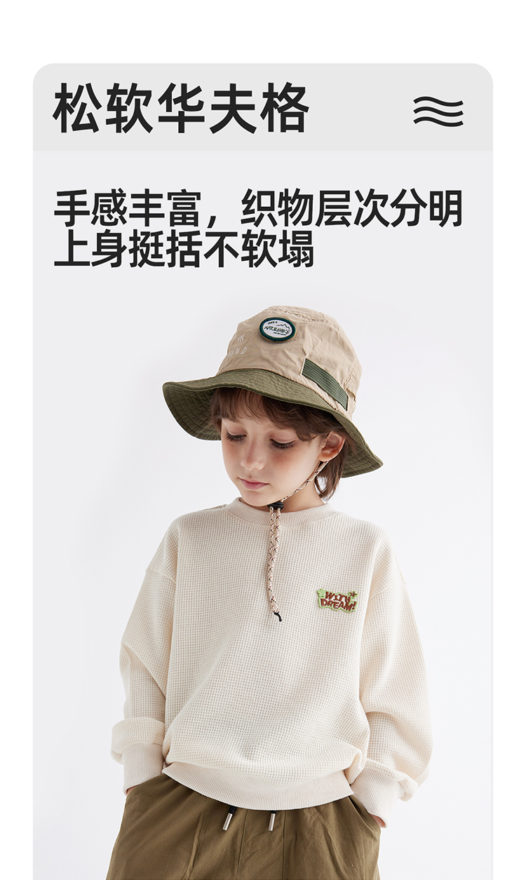 【棉软感华夫格 松软透气】儿童趣味华夫格圆领卫衣 PCWY2410