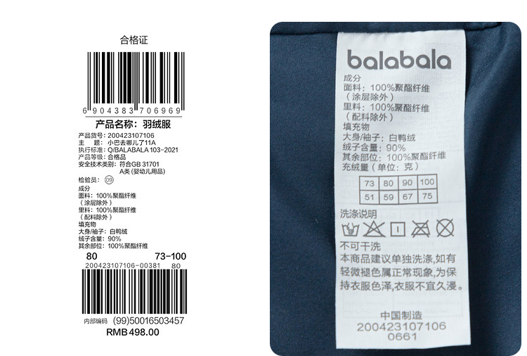 巴拉巴拉婴儿羽绒服男童冬季短款宝宝外套保暖舒适休闲洋气清新潮
