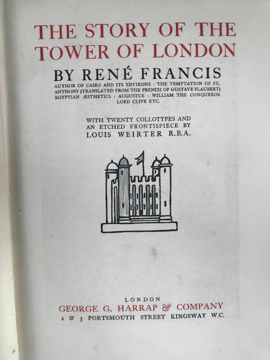 约20世纪早期 雷内·弗朗西斯《伦敦塔的故事》 21幅手工贴图 漆布精装大16开