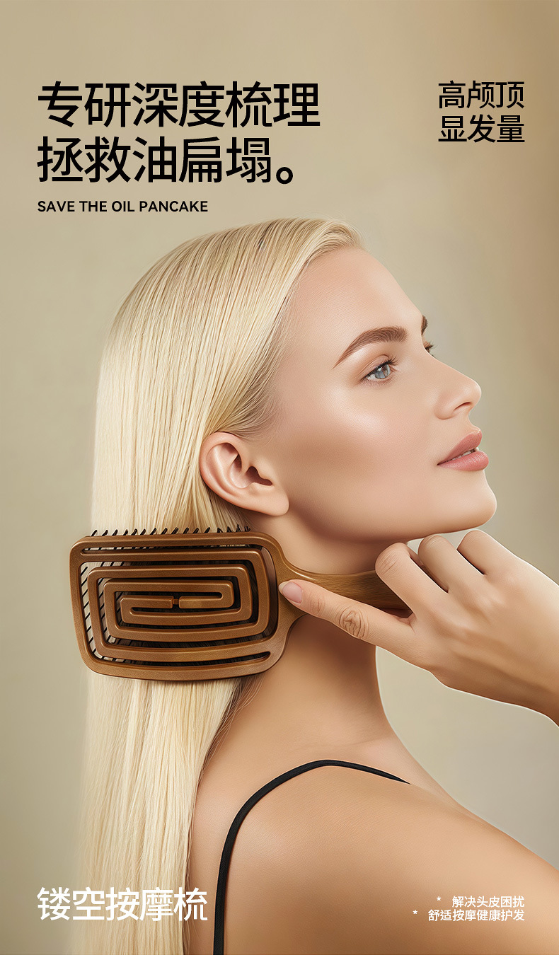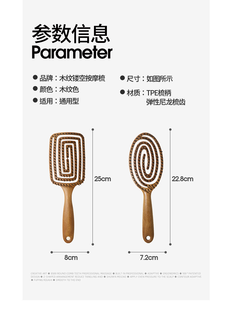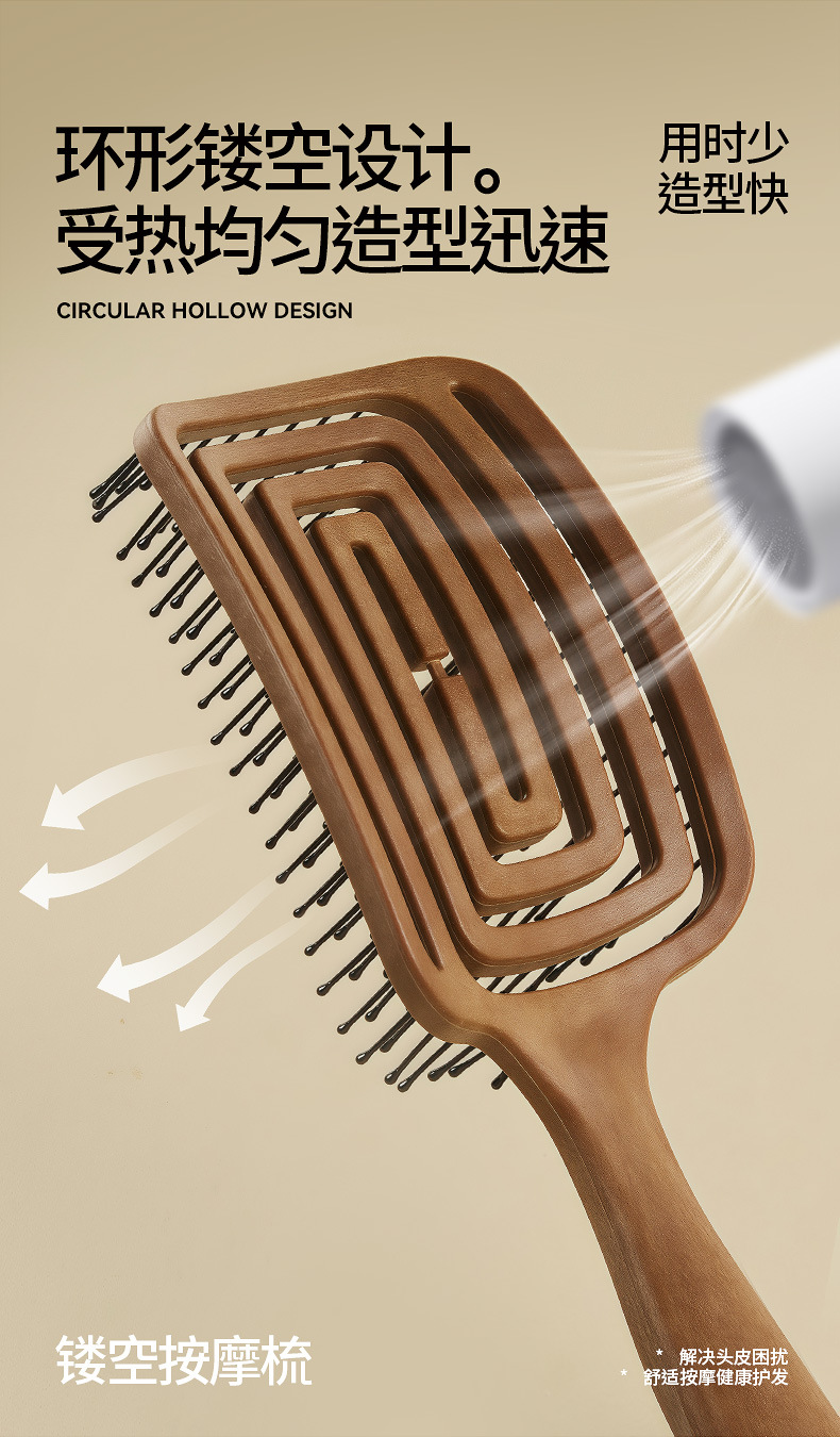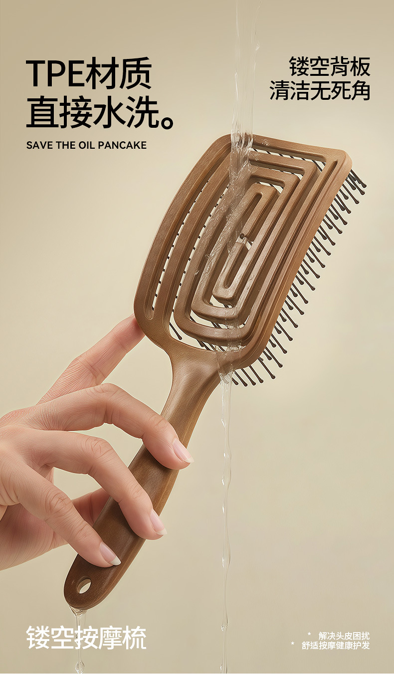 【人体工学设计持久耐用❗️告别扁塌顺发不打结】韩国镂空按摩梳子女士长发顺发蓬松美发气垫梳干湿两用家用排骨梳。jb