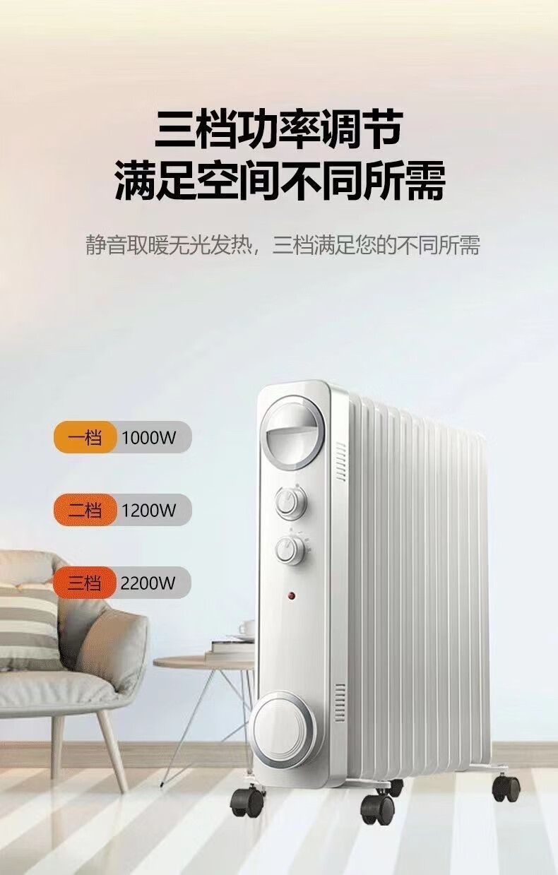 艾美特(Airmate)取暖器HU1339家用13片油汀节能电暖器室内静音