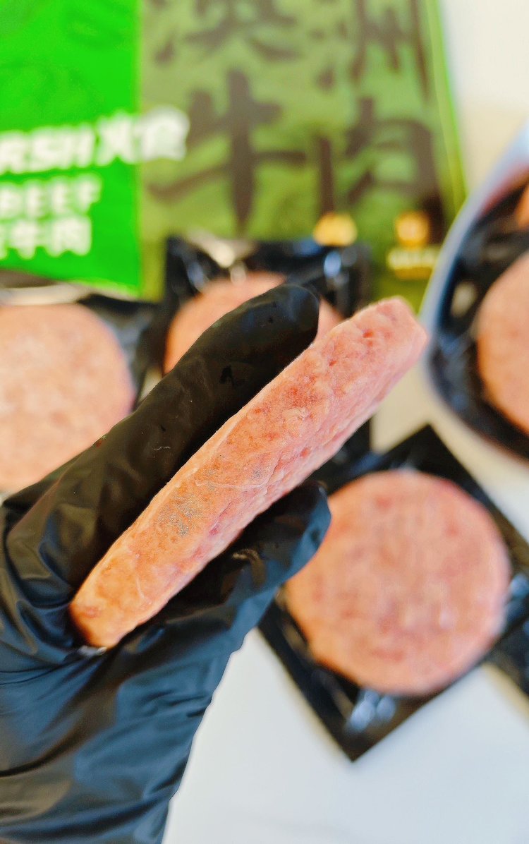 纯和牛肉馅儿,用的是和牛去骨大米龙,超大一片,口感扎实。真正做到了0添加,没有科技与狠活,吃起来是浓浓的和牛脂香气。