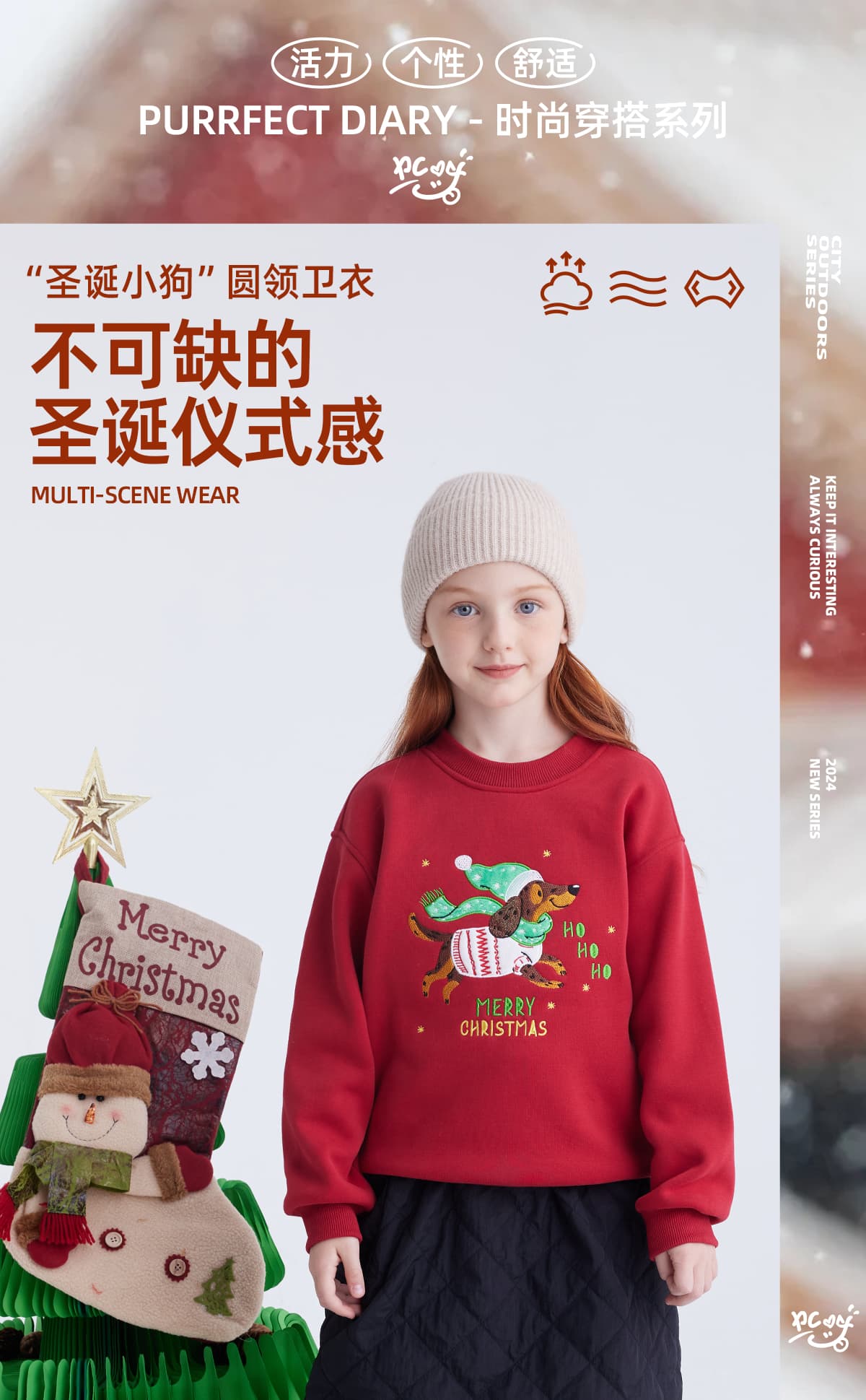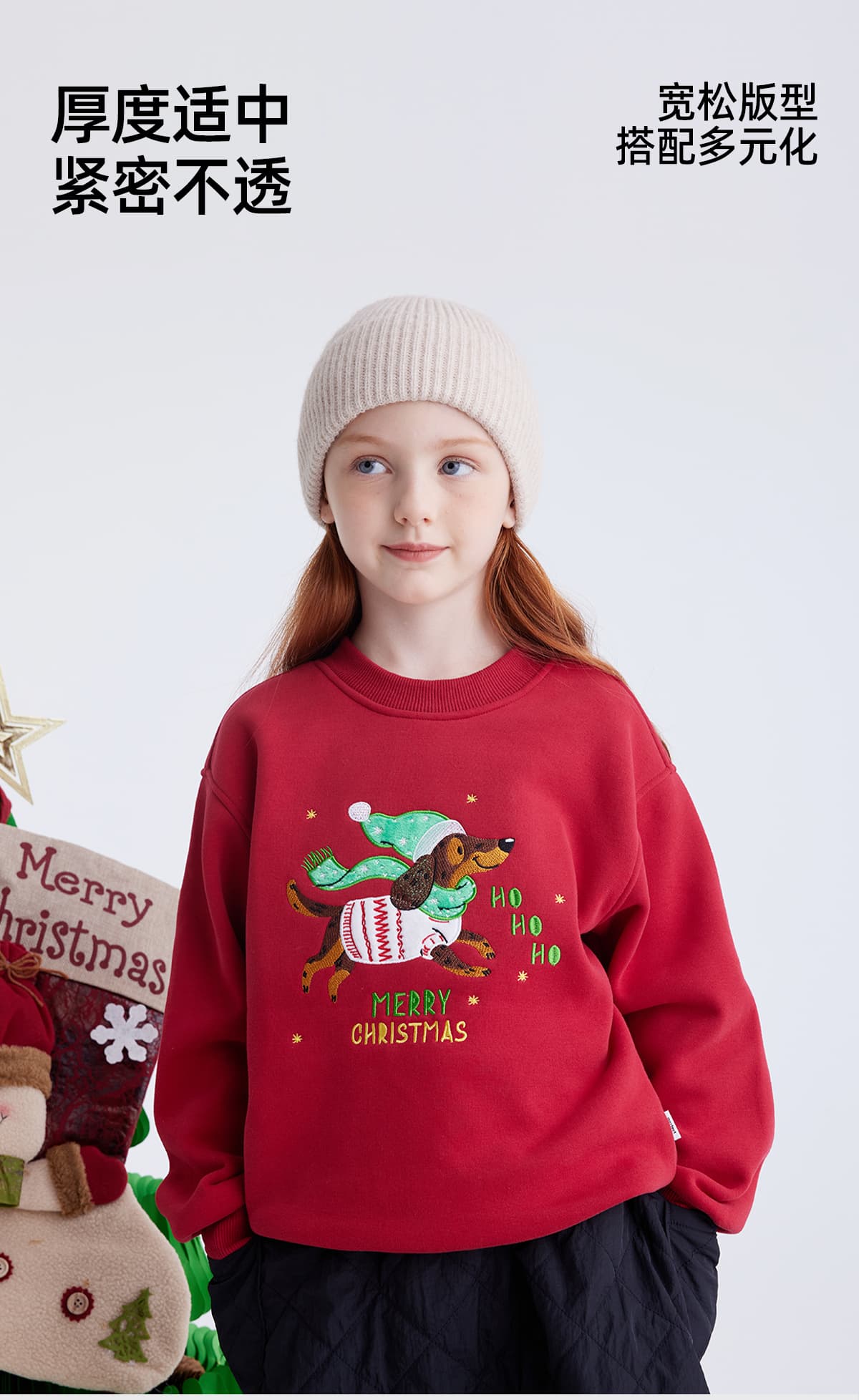 【 圣诞仪式感 腊肠狗】儿童趣味印花加绒圣诞新年卫衣 PDWY2419