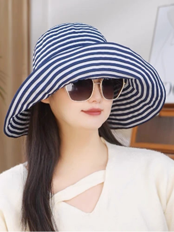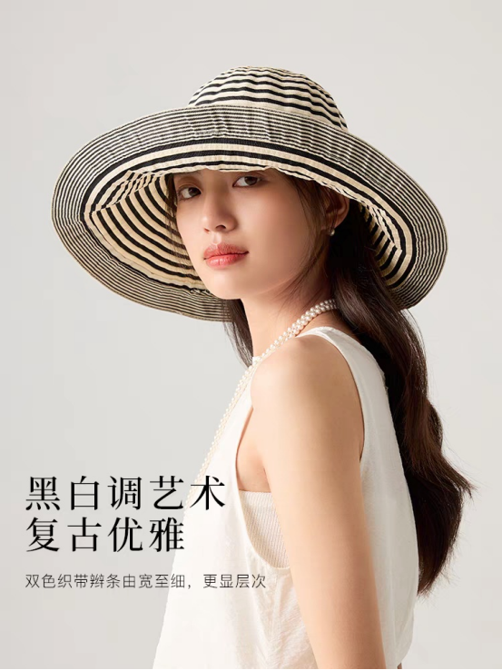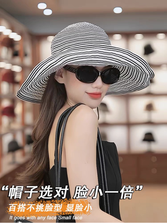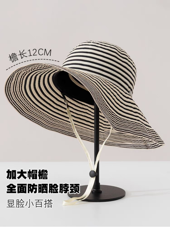 💕姐妹们!挖到宝了!最近入手的这顶🤩 【法式复古经典条纹大帽防晒帽】 ,🌈戴上直接变身巴黎街头的氛围感美人👒,被 N 个路人追着问链接!