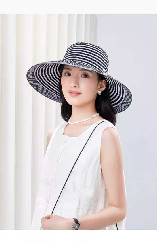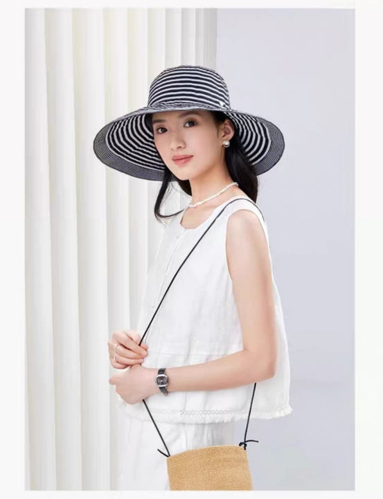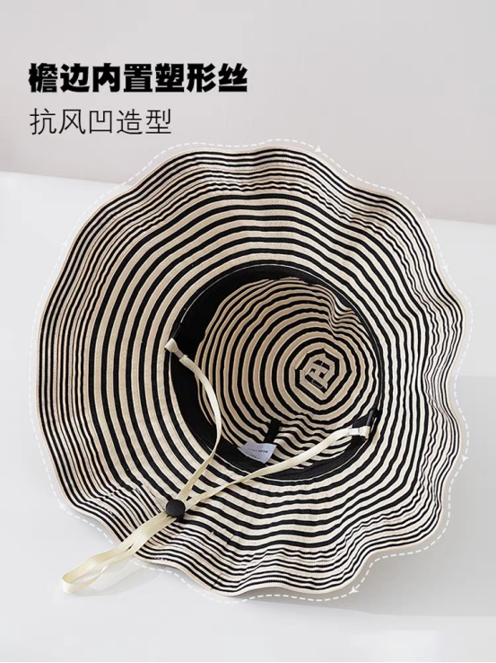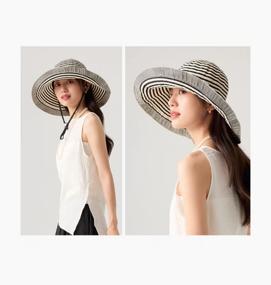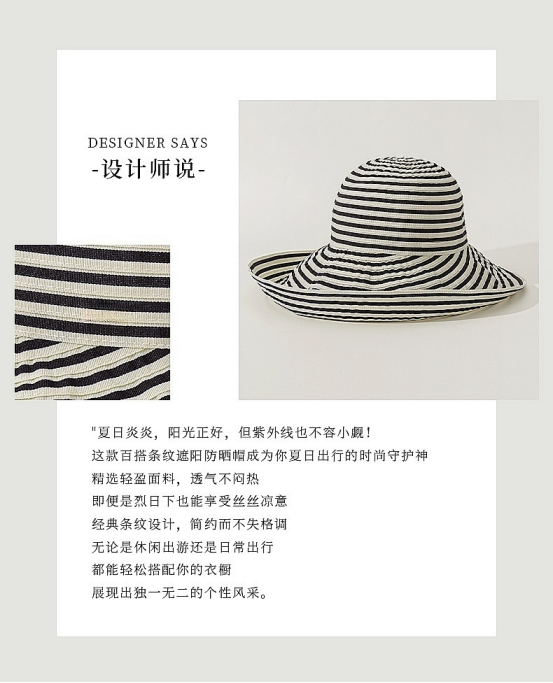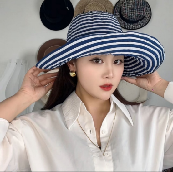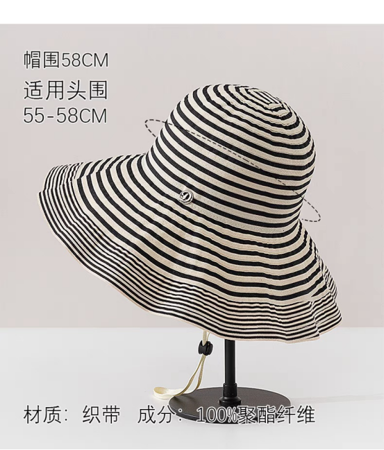 这顶法式复古经典条纹大帽防晒帽简直是颜值与实力并存! 搭配什么都超有氛围感,戴上直接化身巴黎街头时髦精📸。