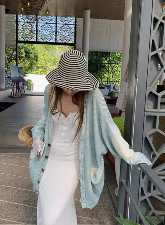三色可选真的绝绝子🤩!黑白配经典永不过时,黑米配色温柔到骨子里, 藏青款又自带清冷高级感。不管穿碎花裙、牛仔套装,还是简单的 T 恤短裤, 一戴上瞬间提升整体穿搭 level✨,拍照更是分分钟出片,法式慵懒感直接拉满~