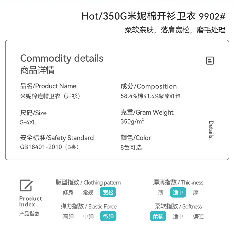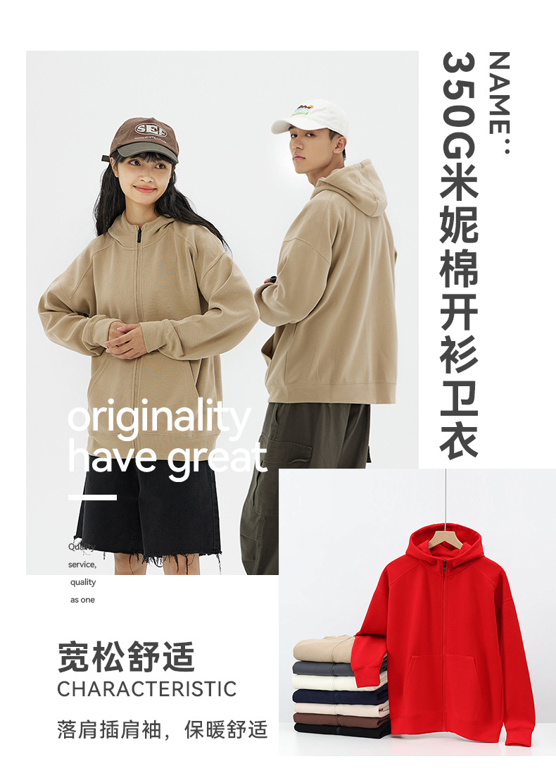 秋冬350G重磅米妮棉连帽外套 美式休闲开衫棉质卫衣开衫
