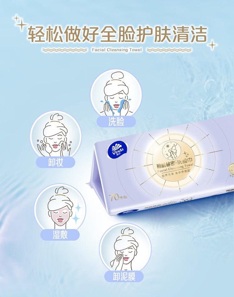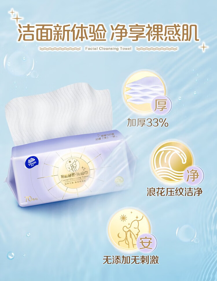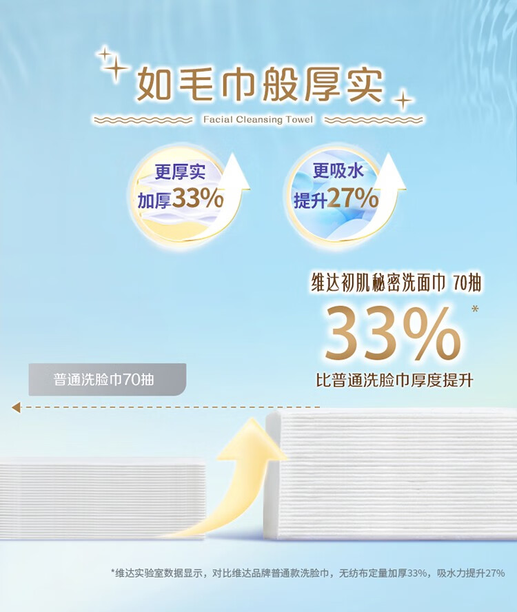 维达初肌秘密洗脸巾60*3抽V1182(180*200*60抽)