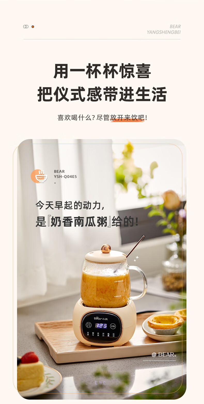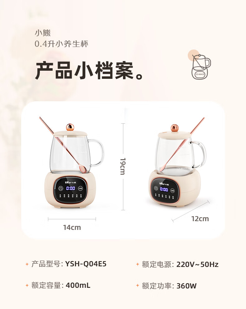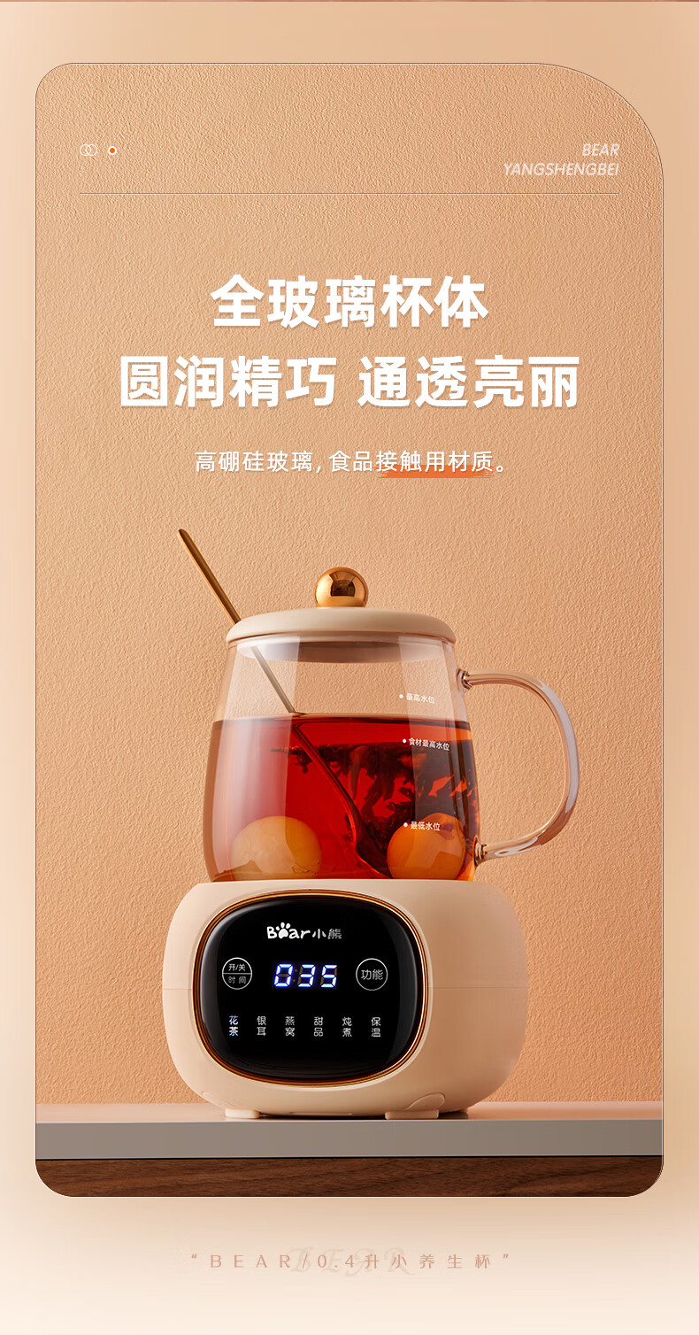 小熊(Bear)迷你养生壶 养生杯煮茶器办公室小型分体式烧水壶电热水壶加厚高硼玻璃电热杯垫 YSH-Q04E5【轻颜养生杯】