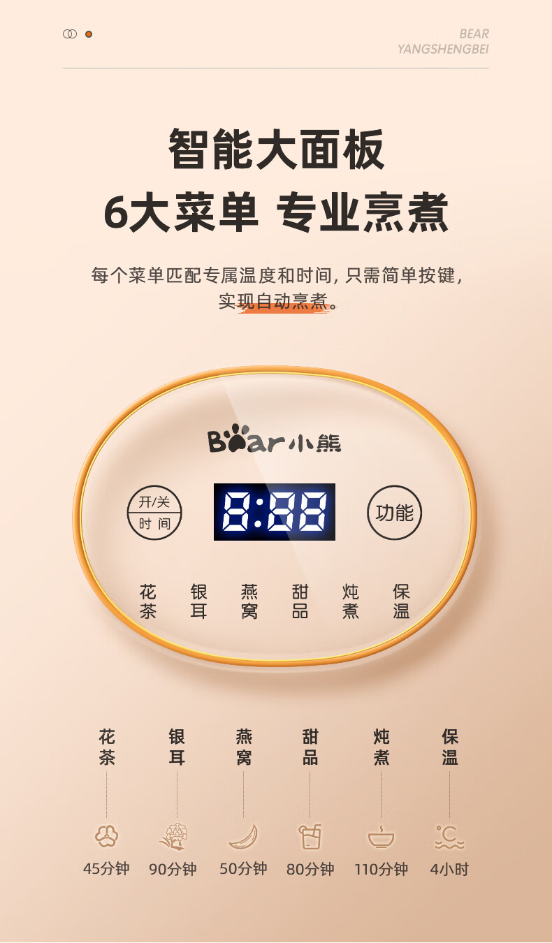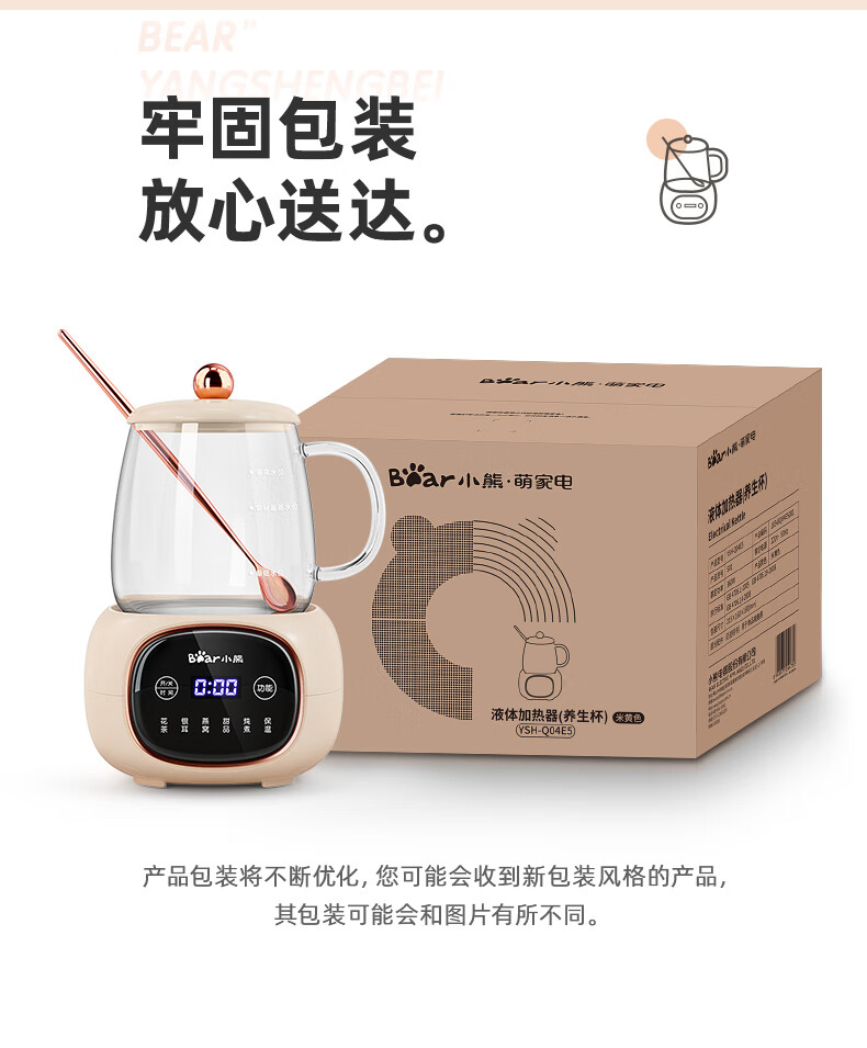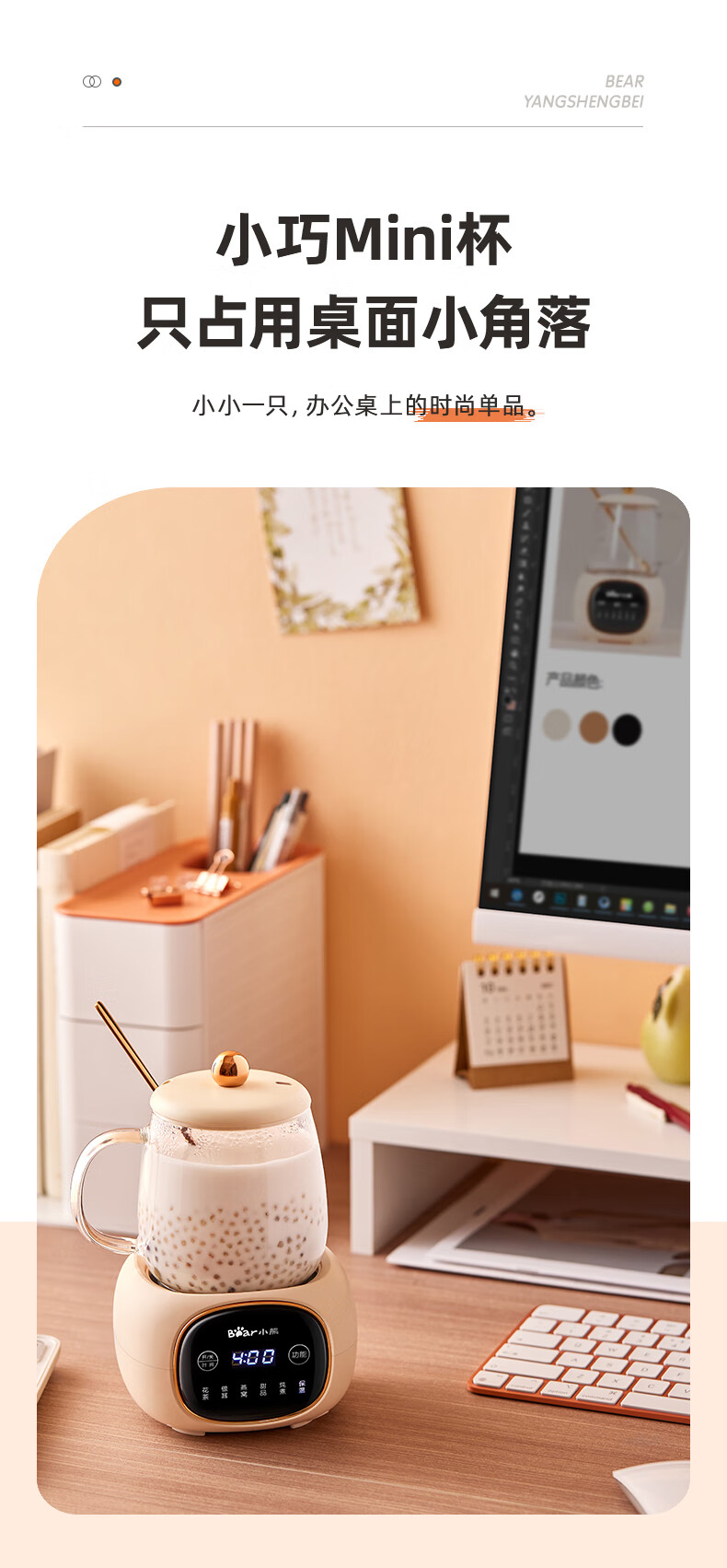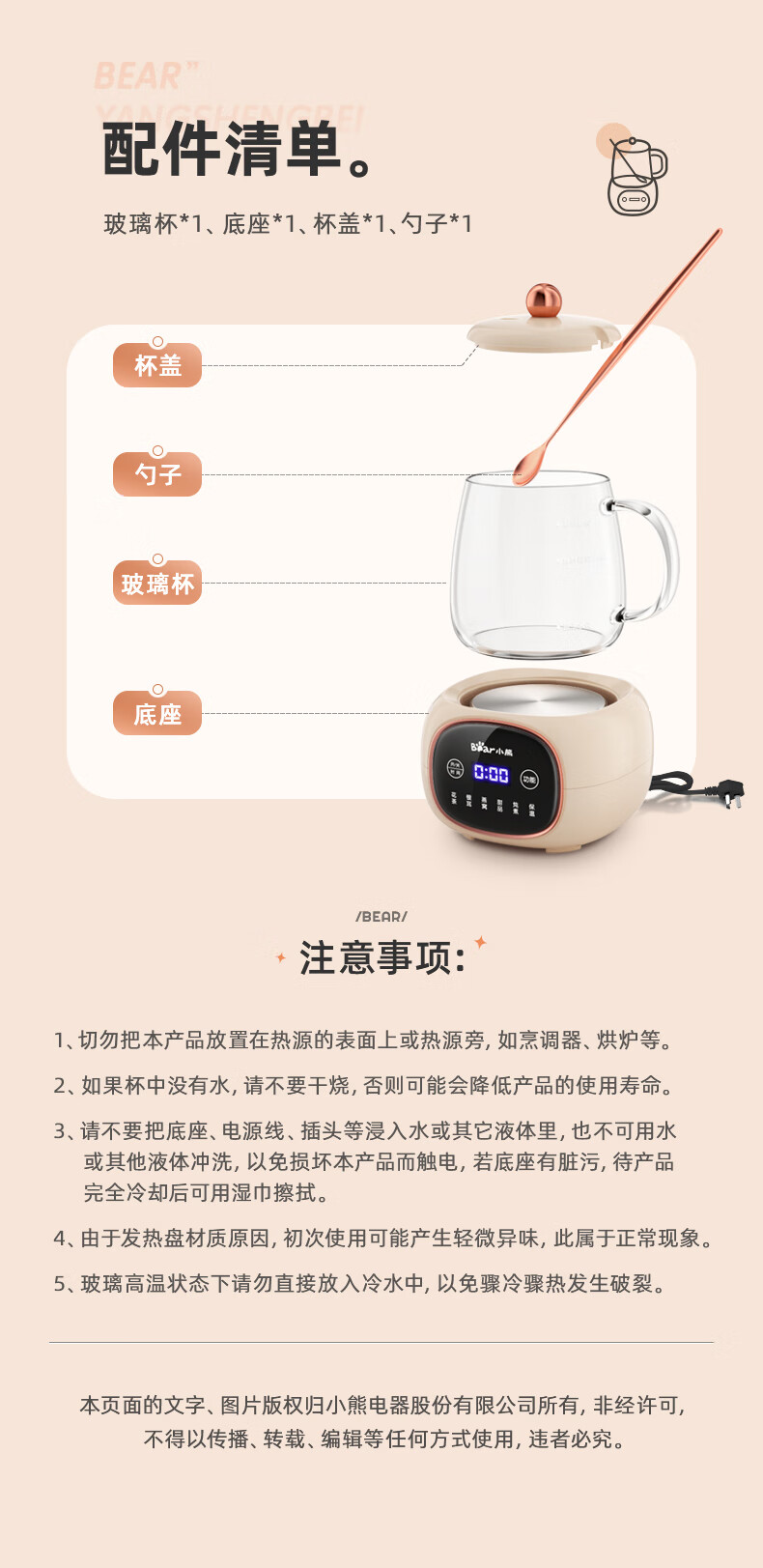 小熊(Bear)迷你养生壶 养生杯煮茶器办公室小型分体式烧水壶电热水壶加厚高硼玻璃电热杯垫 YSH-Q04E5【轻颜养生杯】