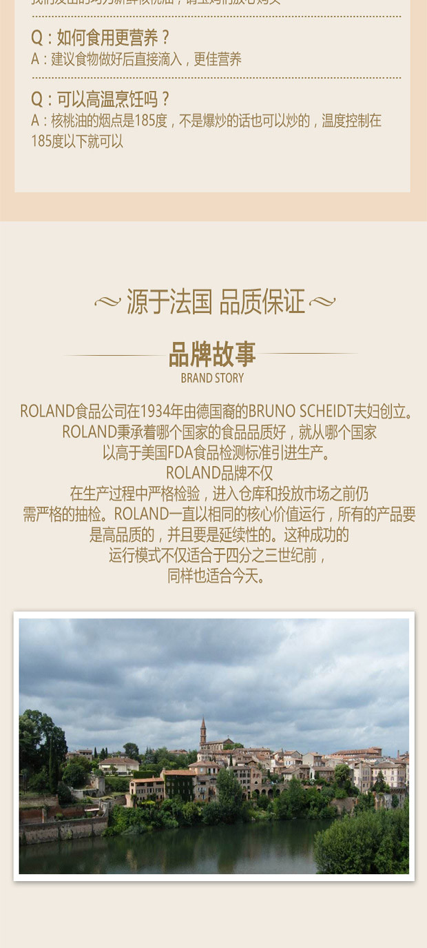 【完税进口】法国原装进口Roland罗朗德初榨核桃油 500ml