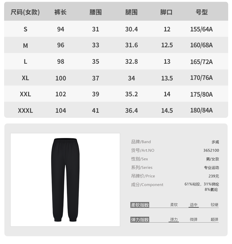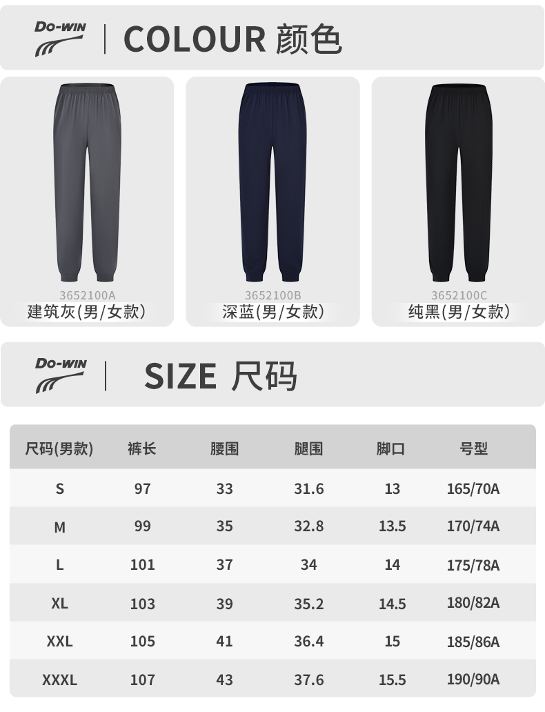 多威跑步长裤男新款弹力舒适运动裤女束脚休闲裤3652100