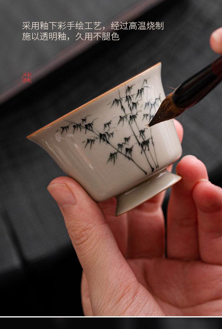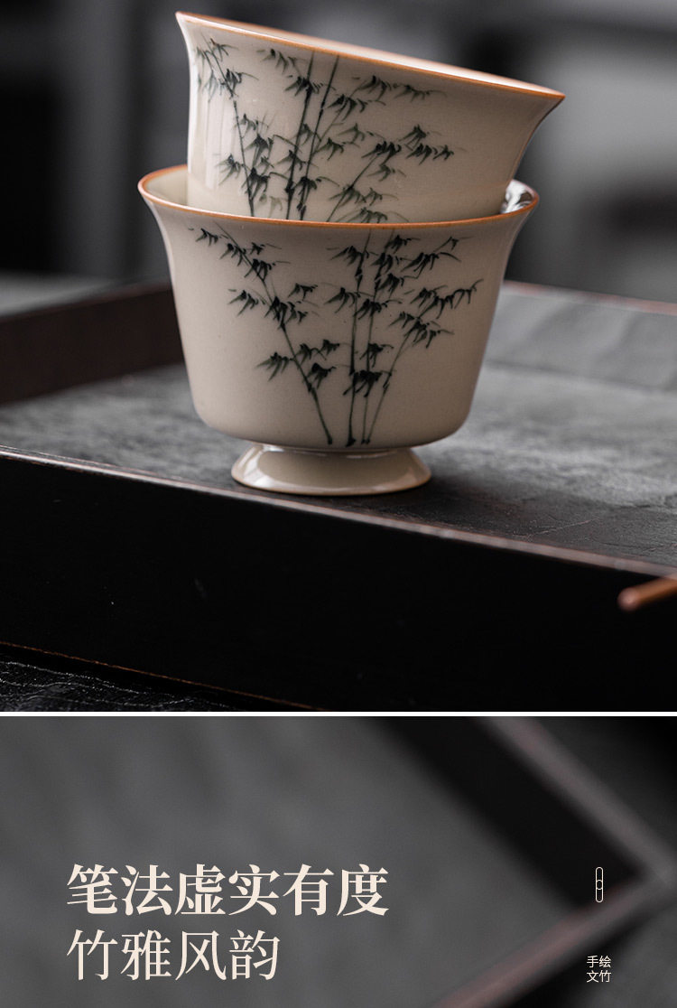 手绘禅意功夫茶具杯陶瓷主人单个杯复古风品茗罗汉文竹杯中式茶杯 商品图4