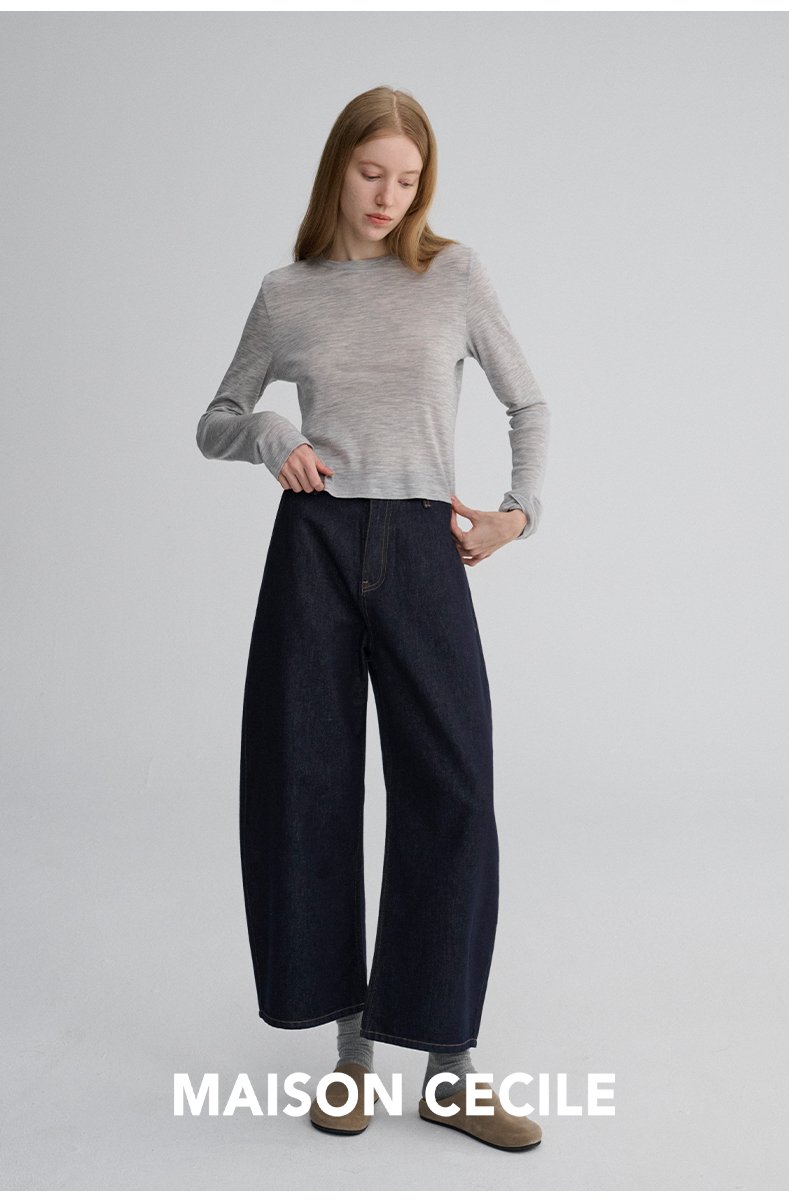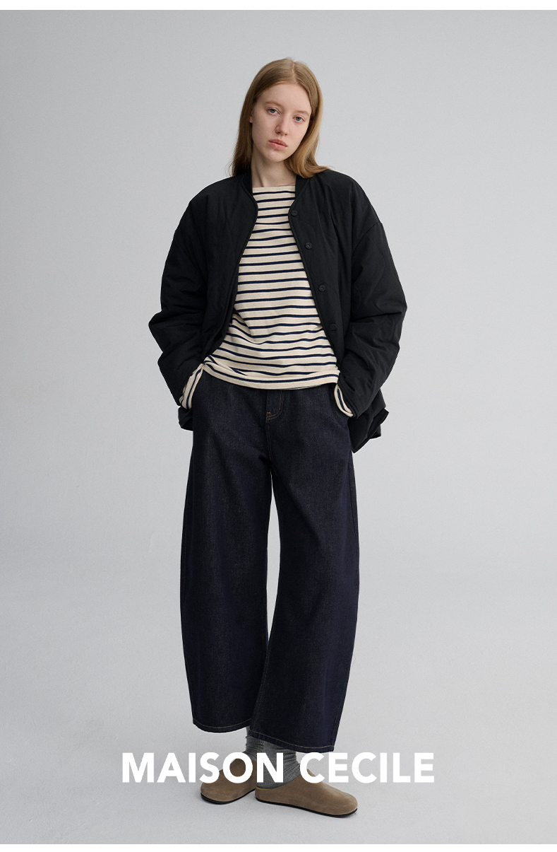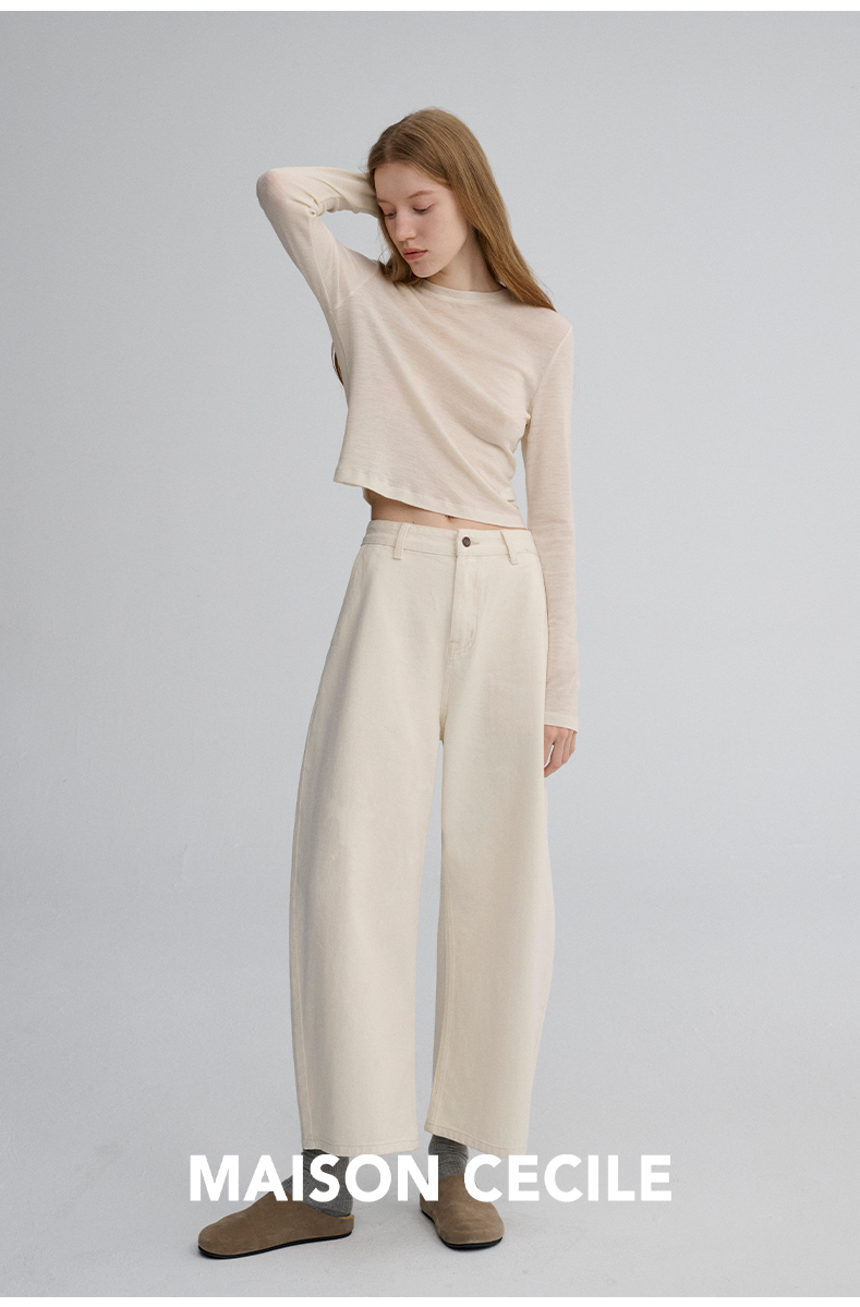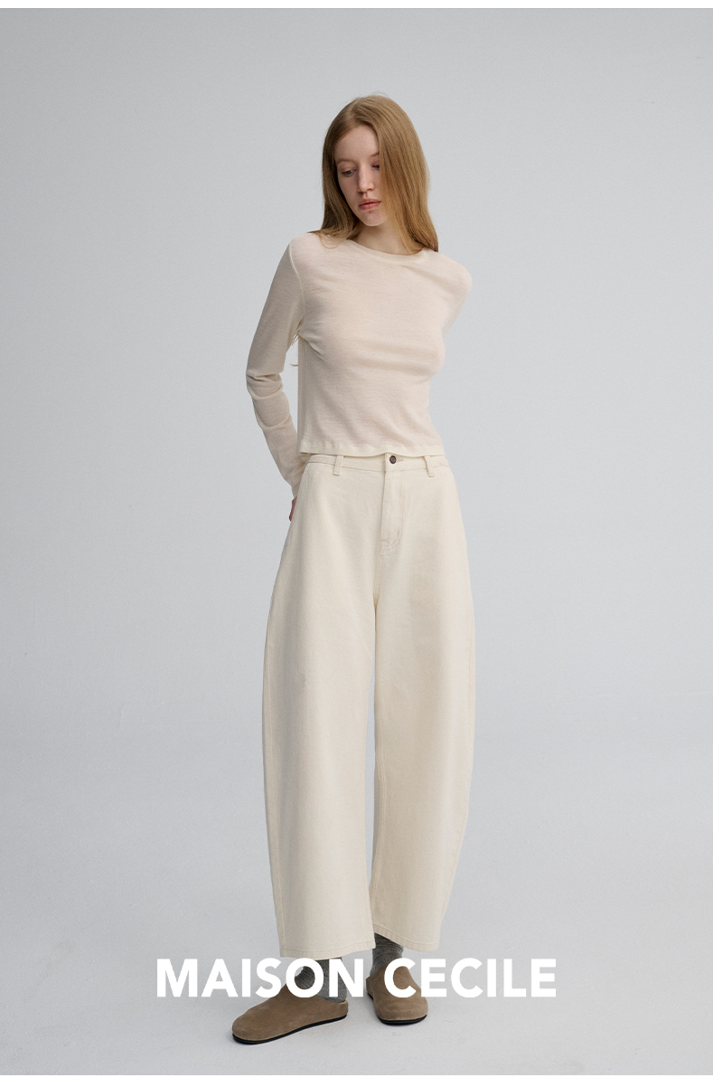 MAISON CECILE 两色|立体裁剪微弧茧型松弛感显比例九分牛仔裤