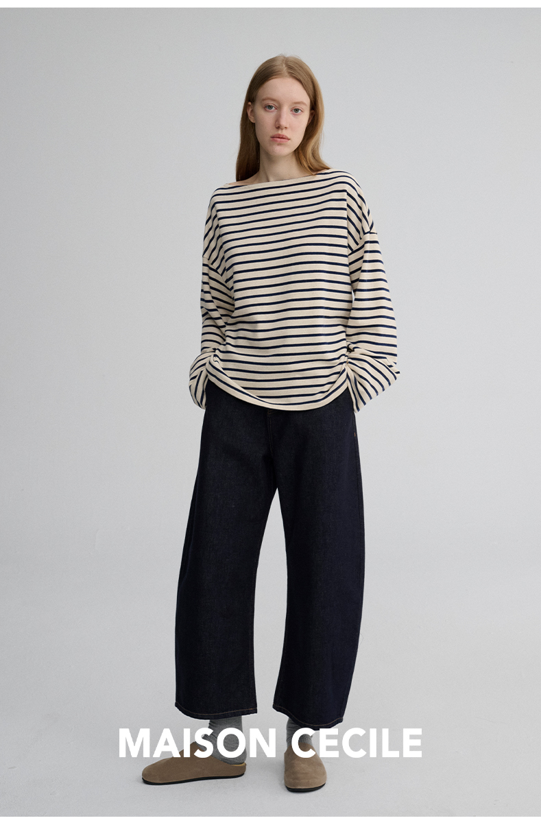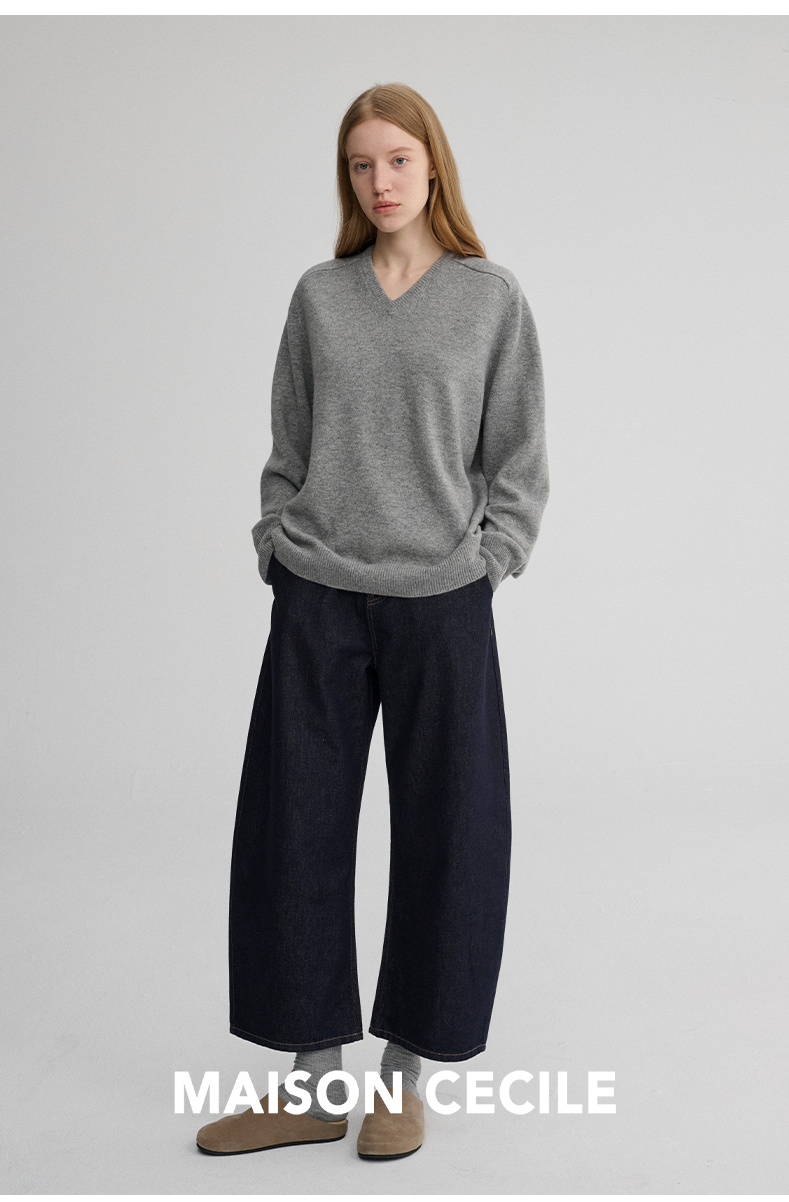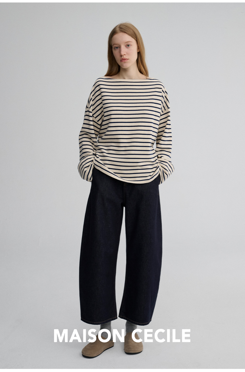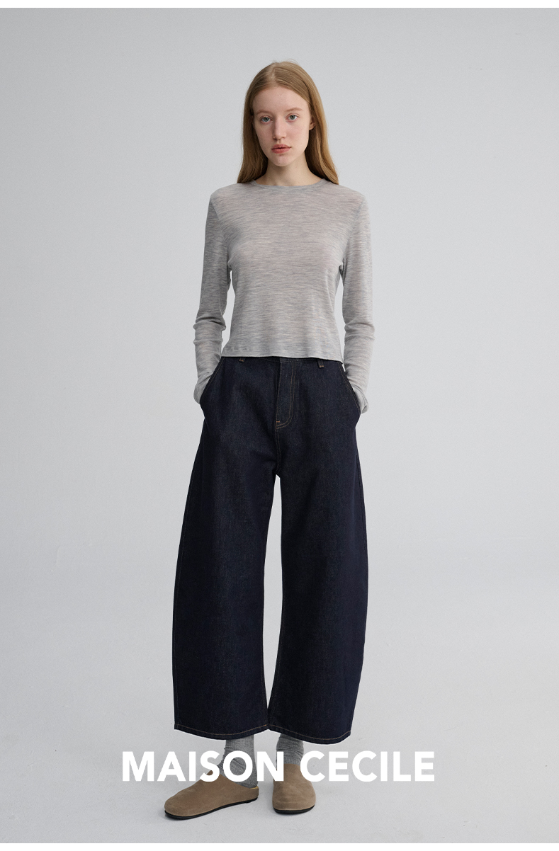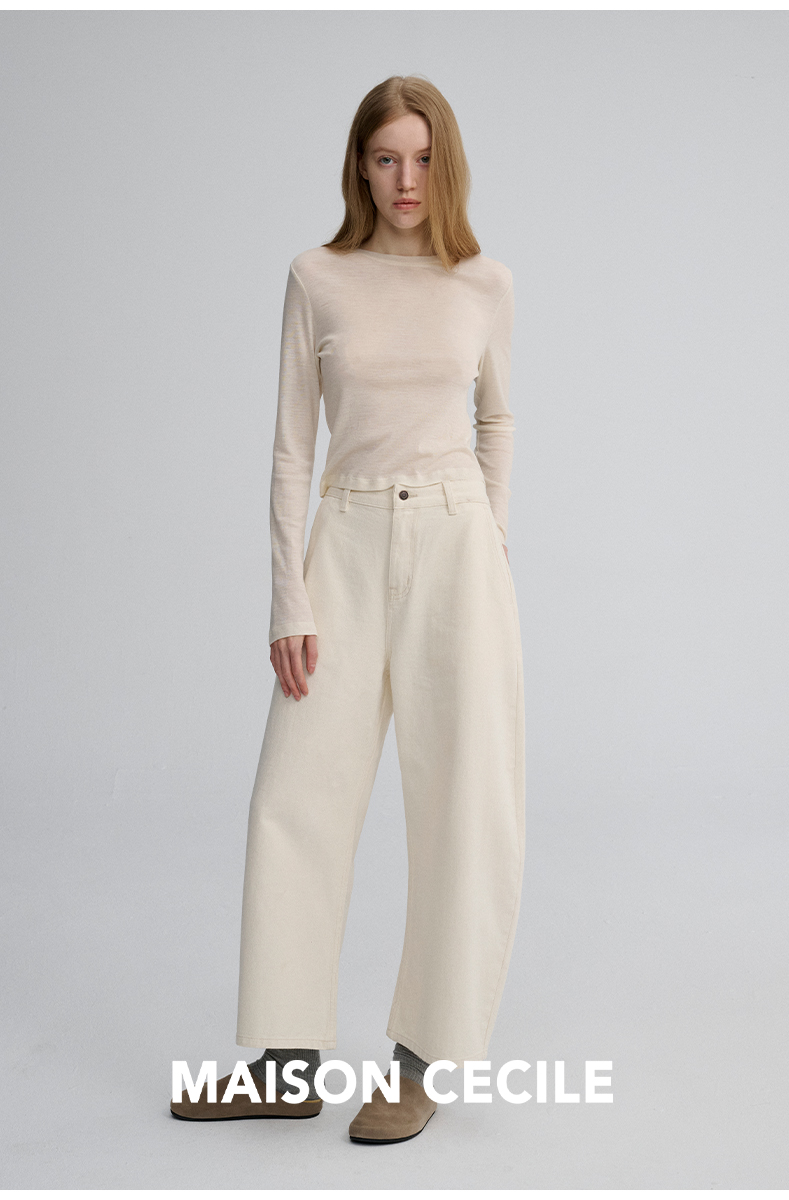 MAISON CECILE 两色|立体裁剪微弧茧型松弛感显比例九分牛仔裤