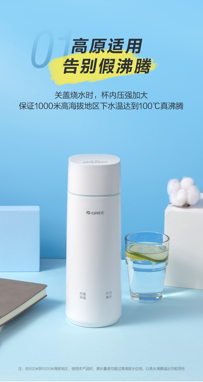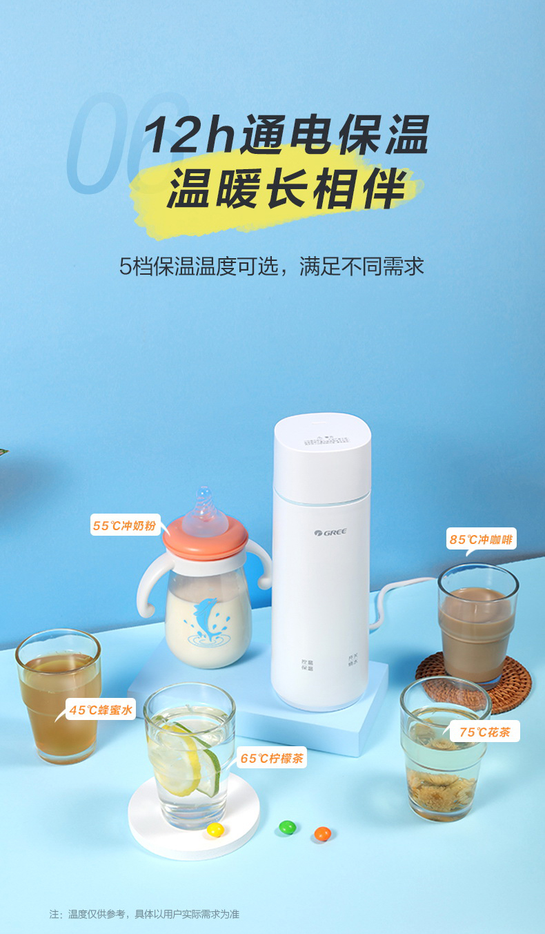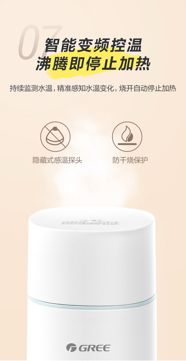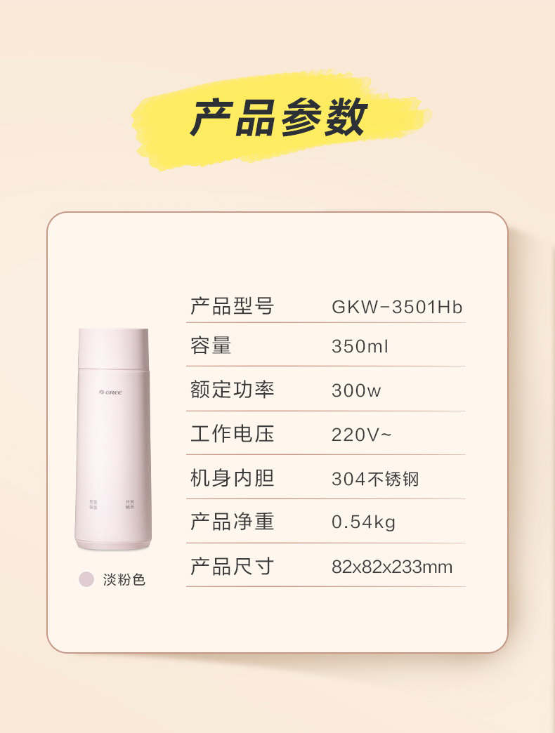 格力便携式电热水杯 350mL 长效保温 携带方便 GKW-3501Hb 淡粉色