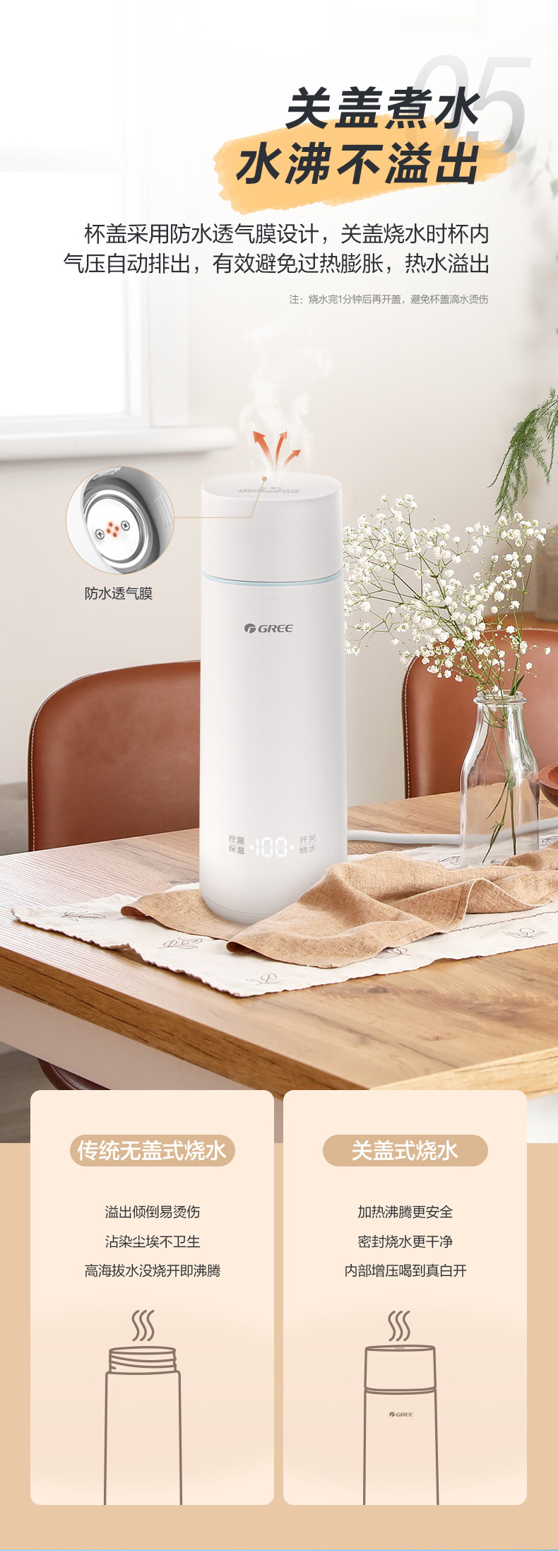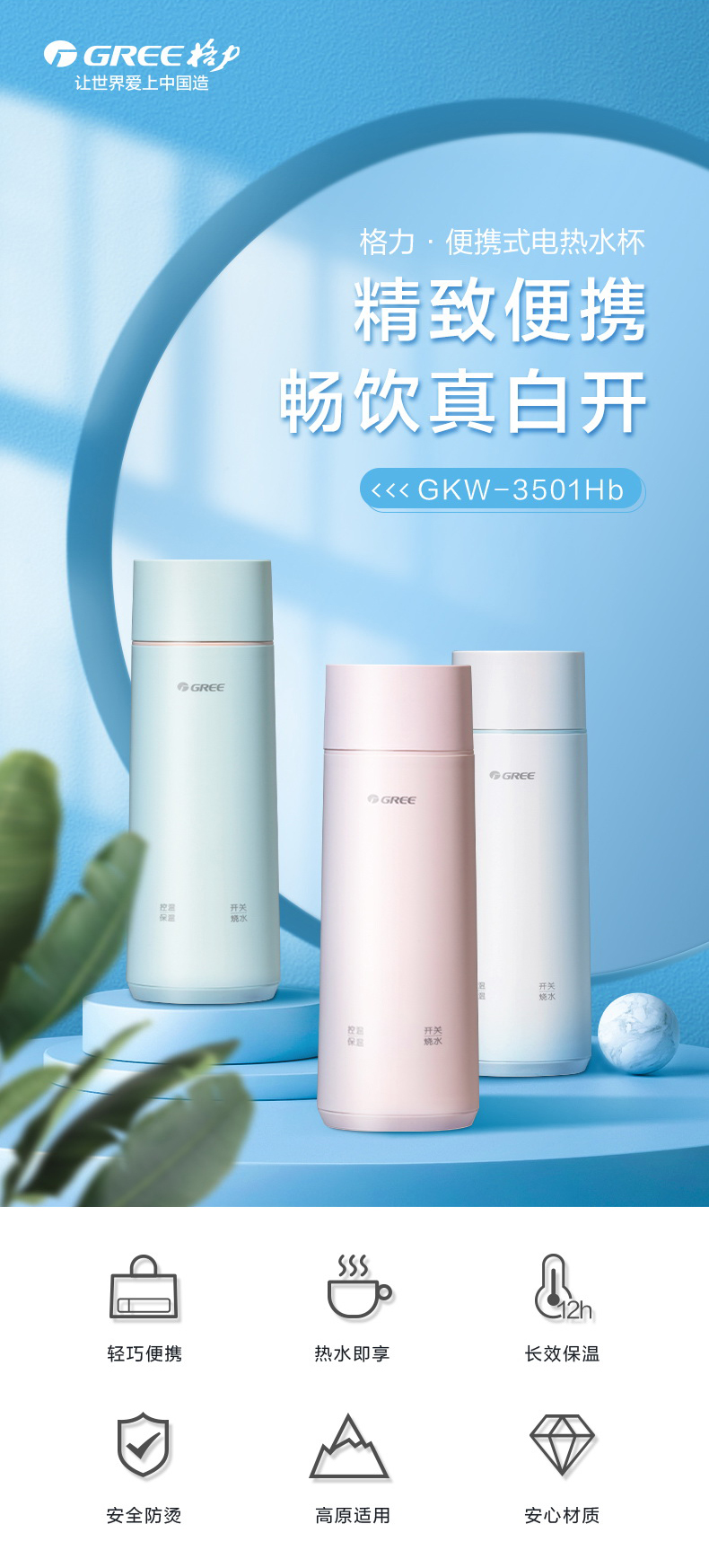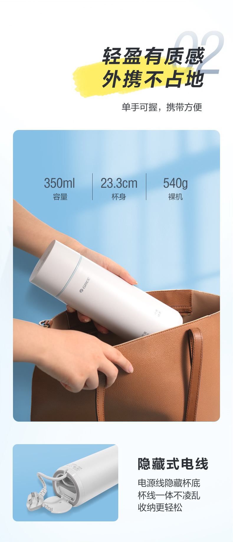 格力便携式电热水杯 350mL 长效保温 携带方便 GKW-3501Hb 淡粉色