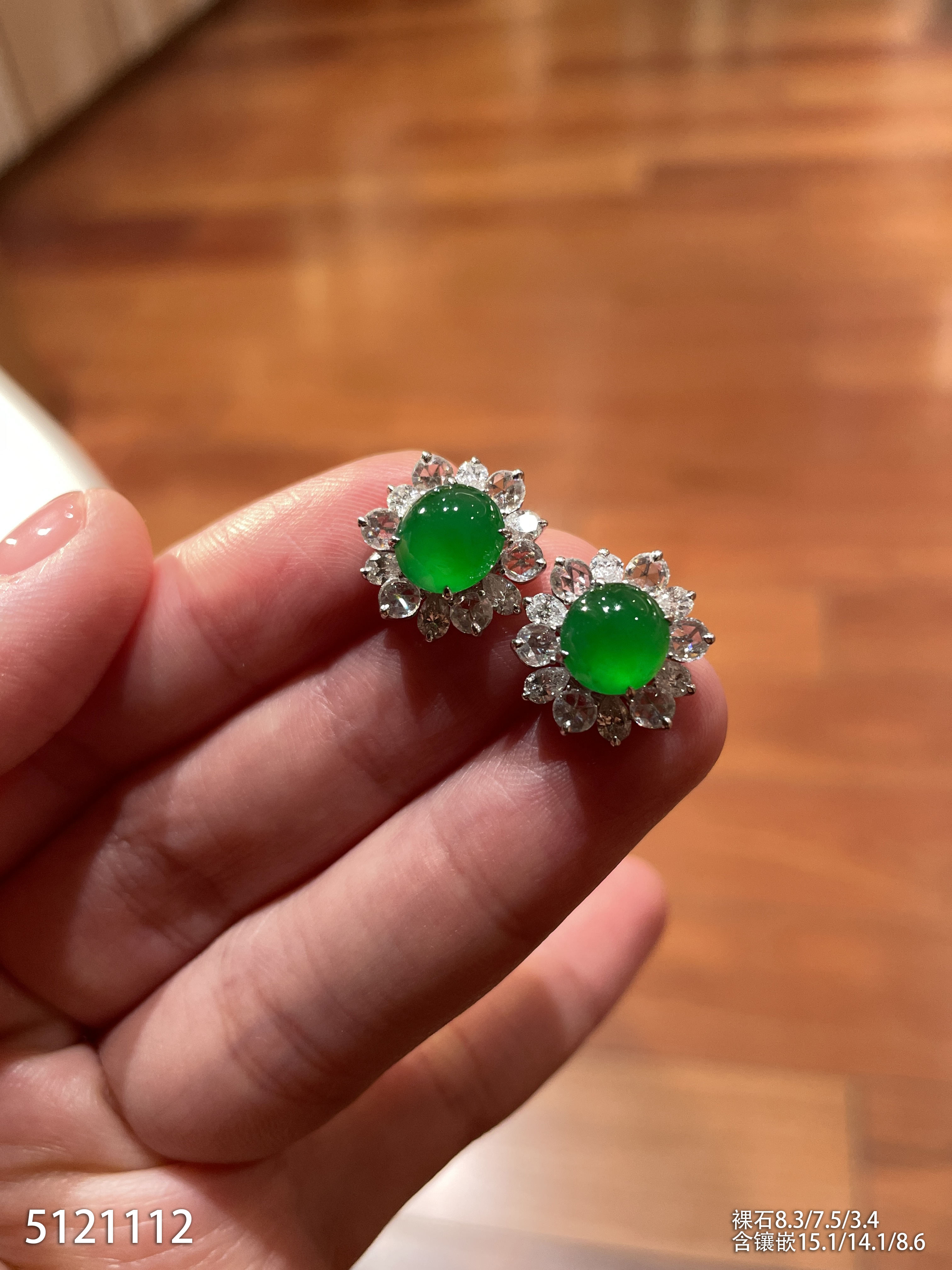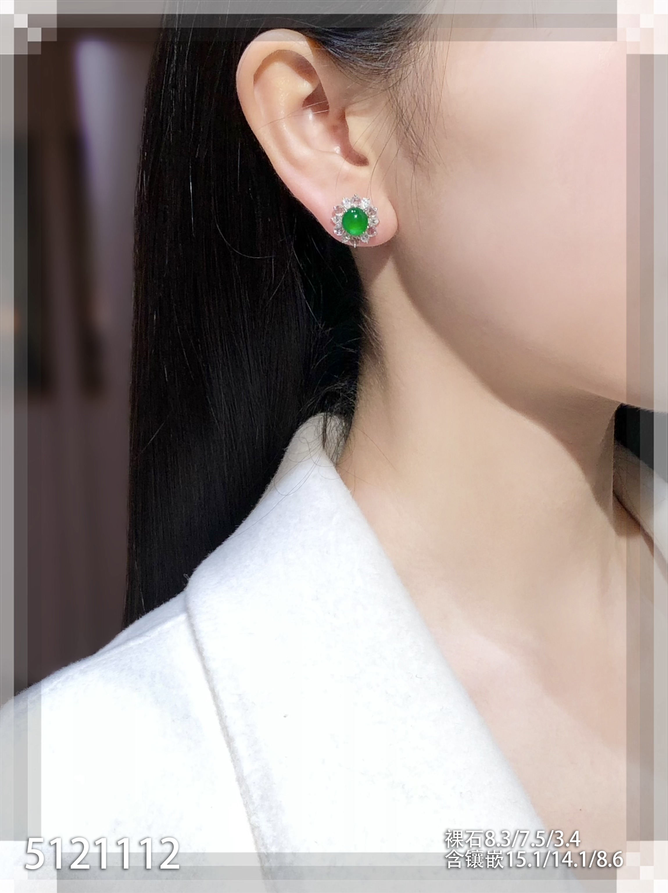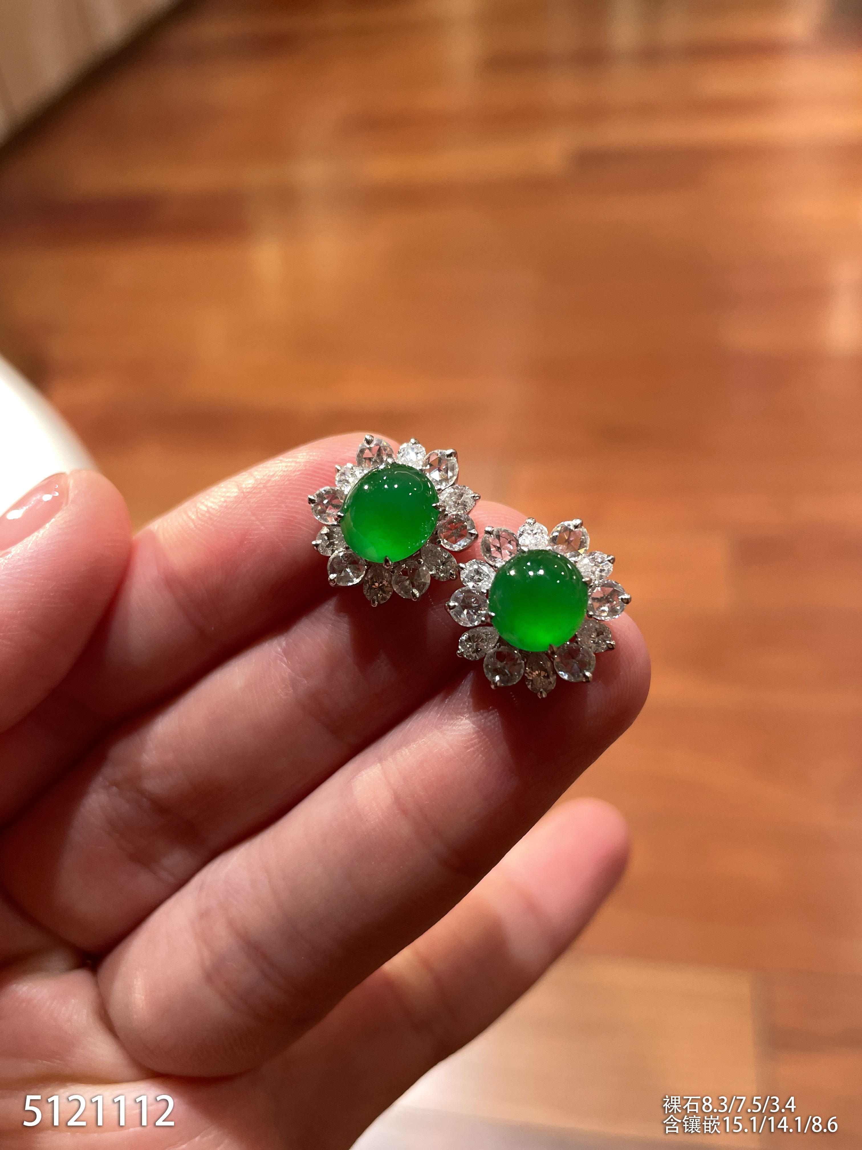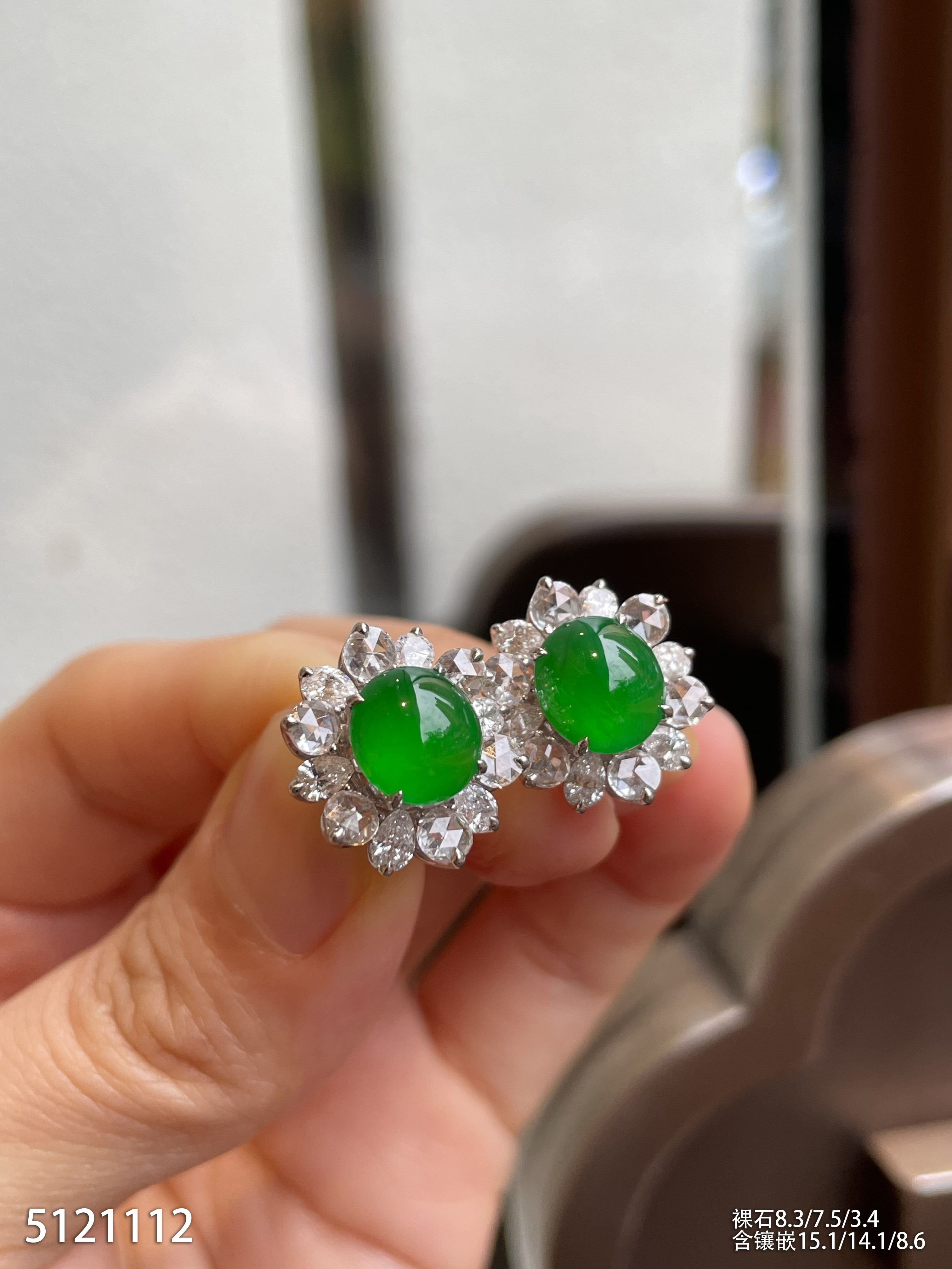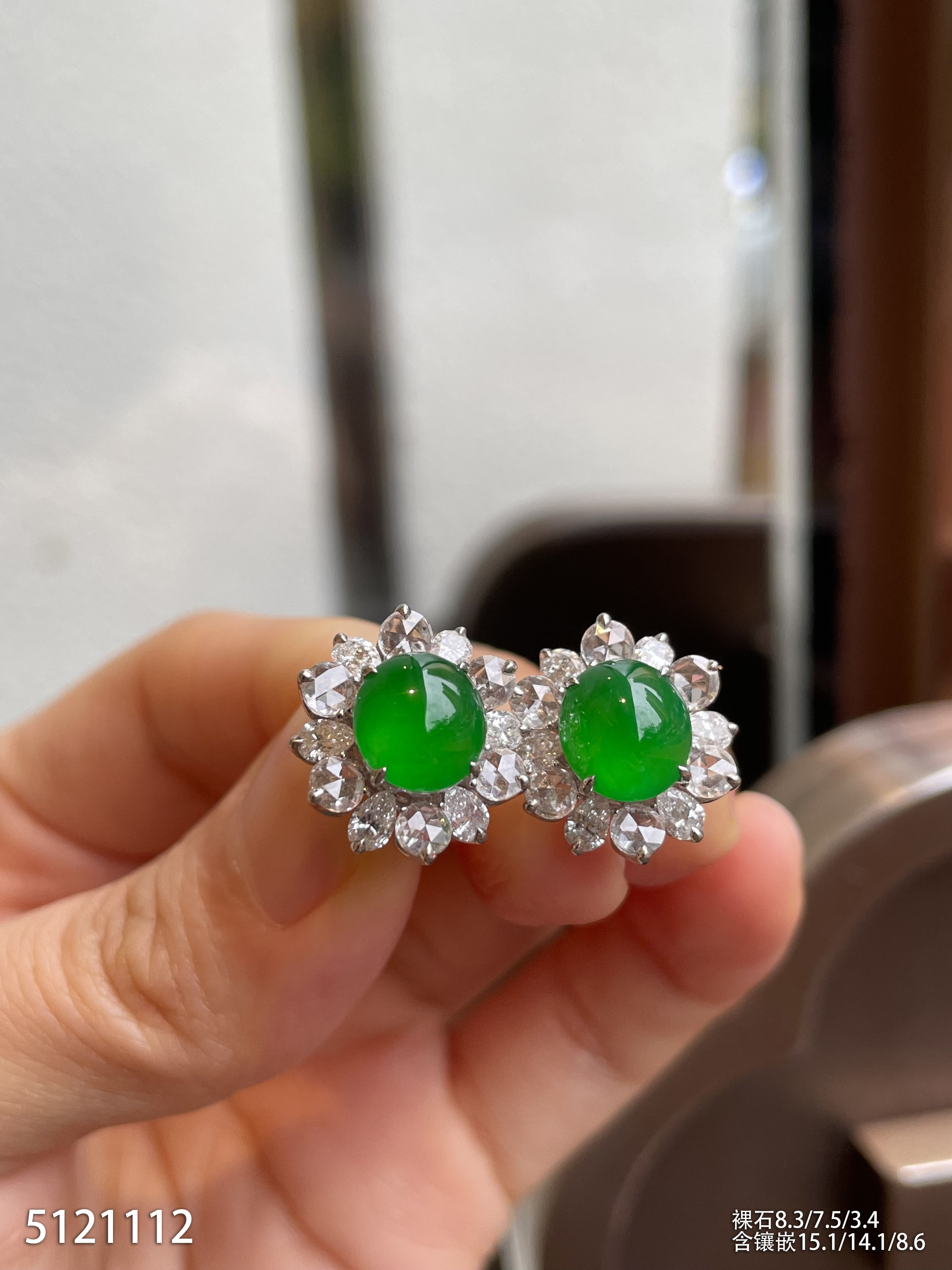 老坑艳绿蛋面耳钉【5121112】具体价格微信咨询