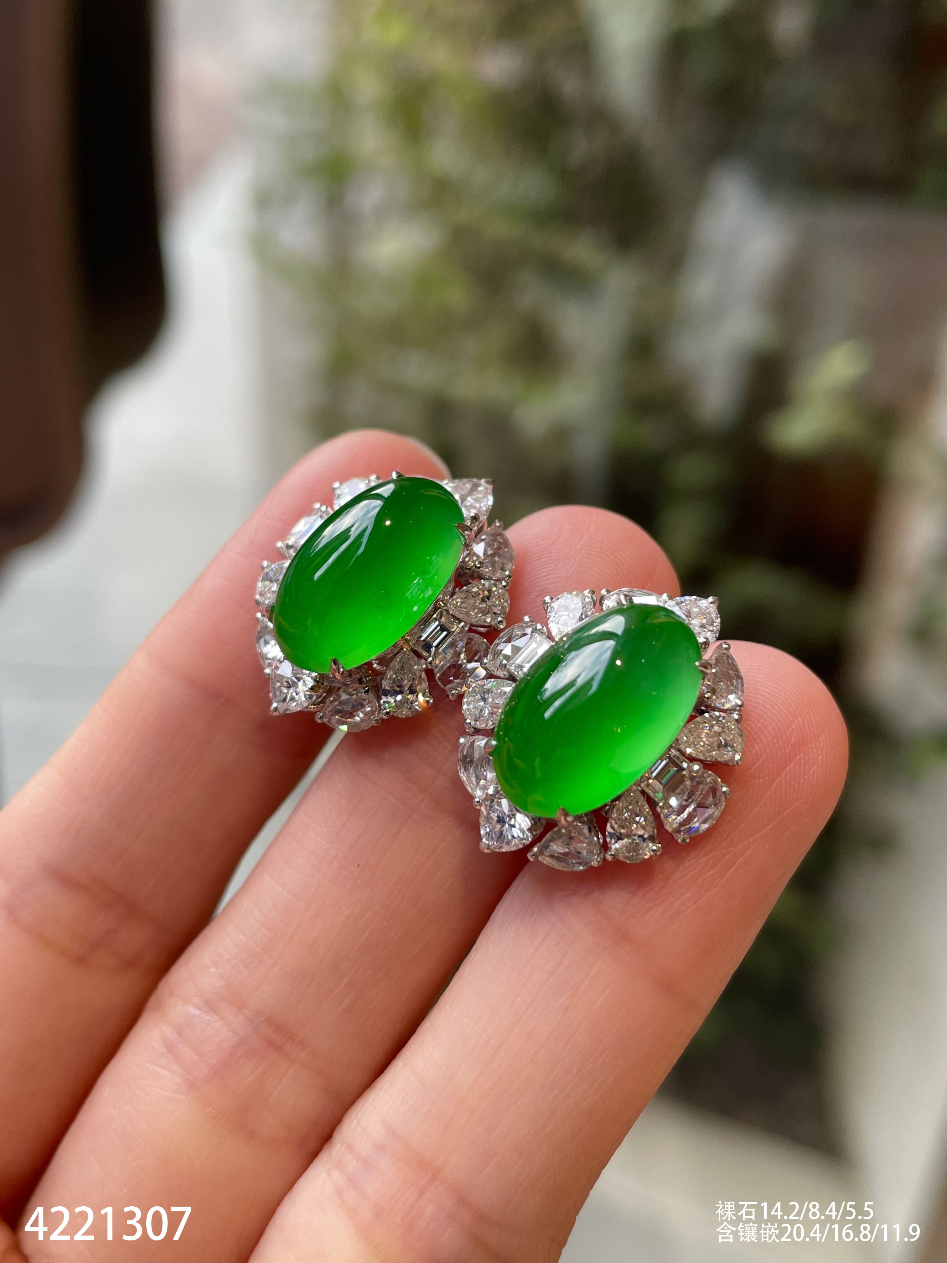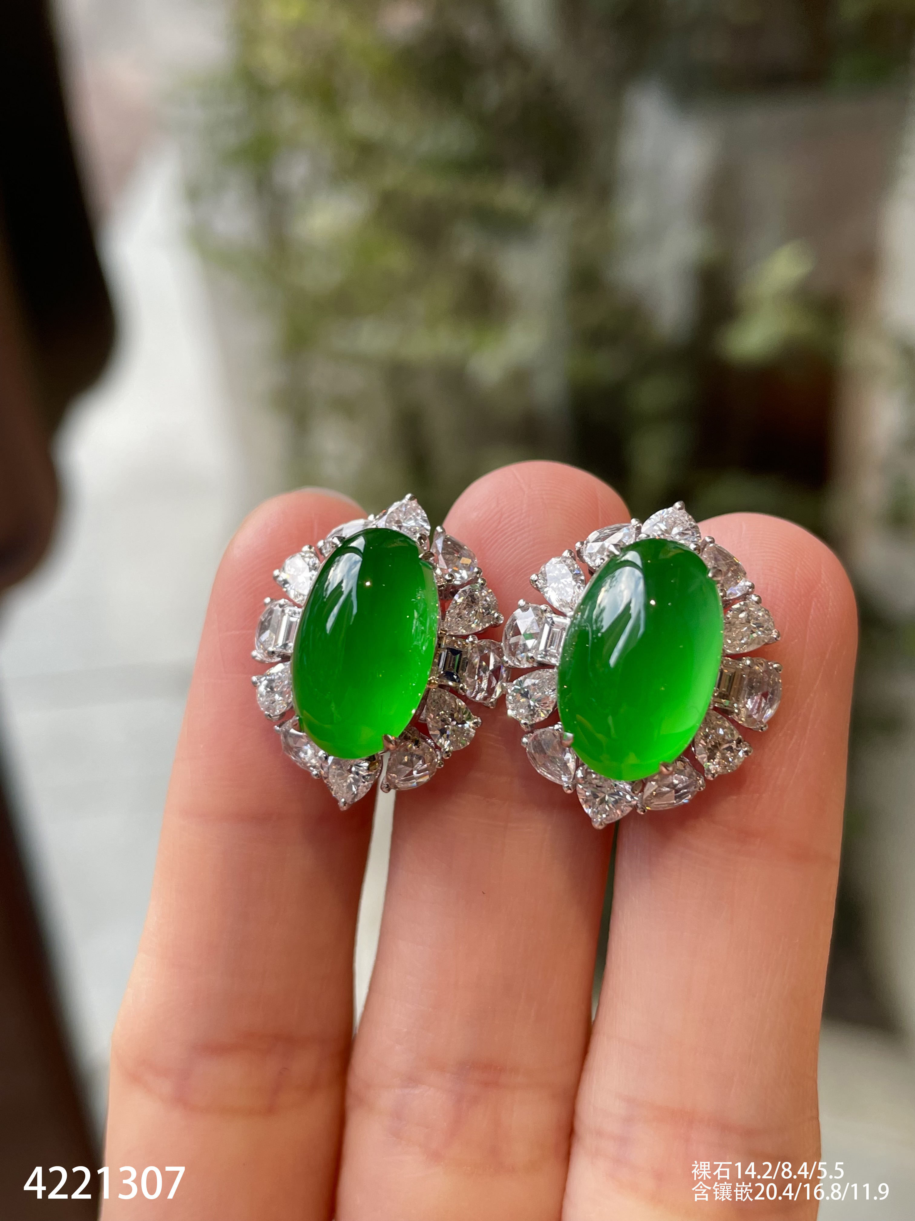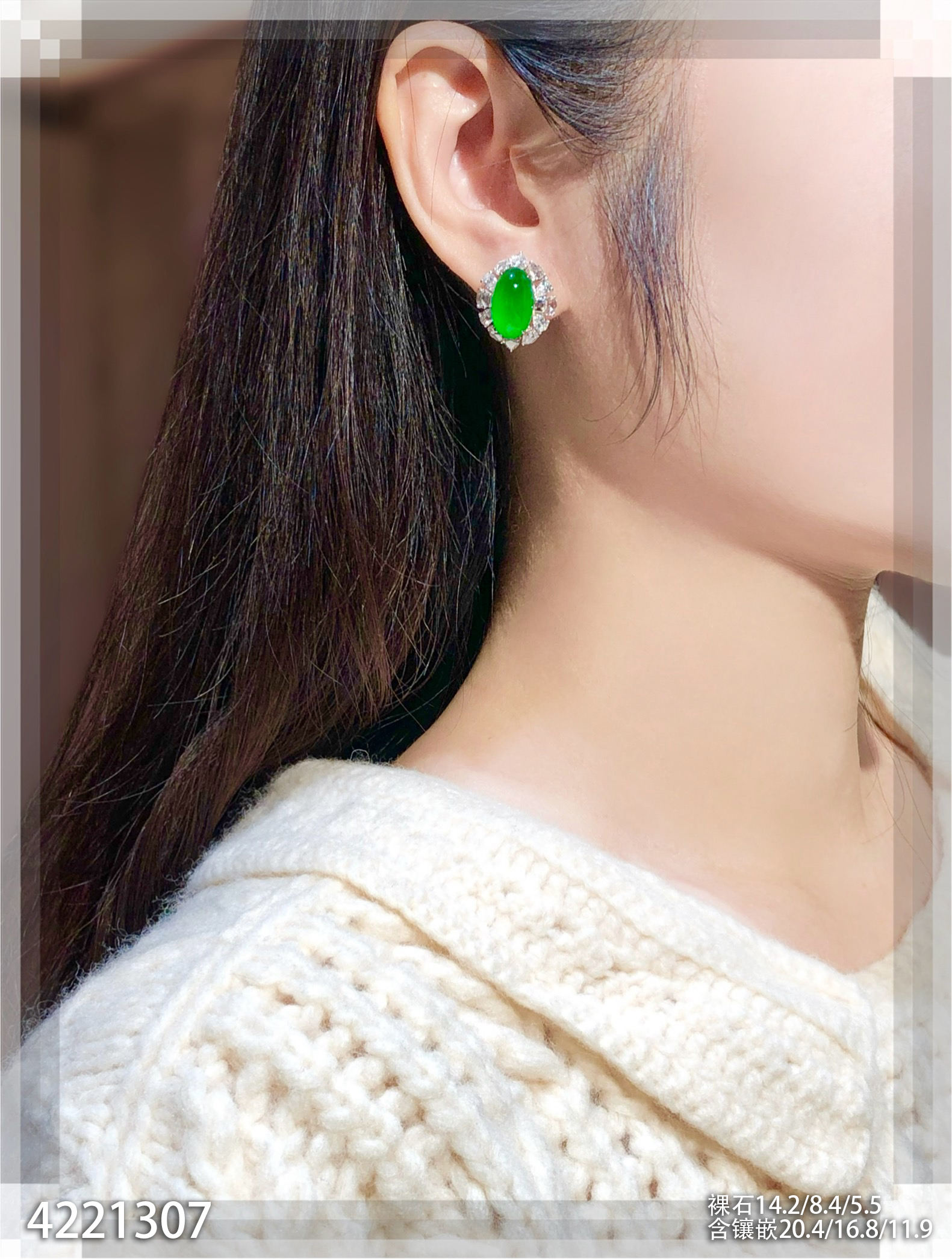 老坑玻璃种艳绿蛋面耳钉【4221307】具体价格微信咨询