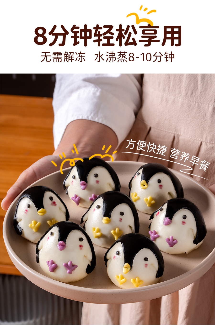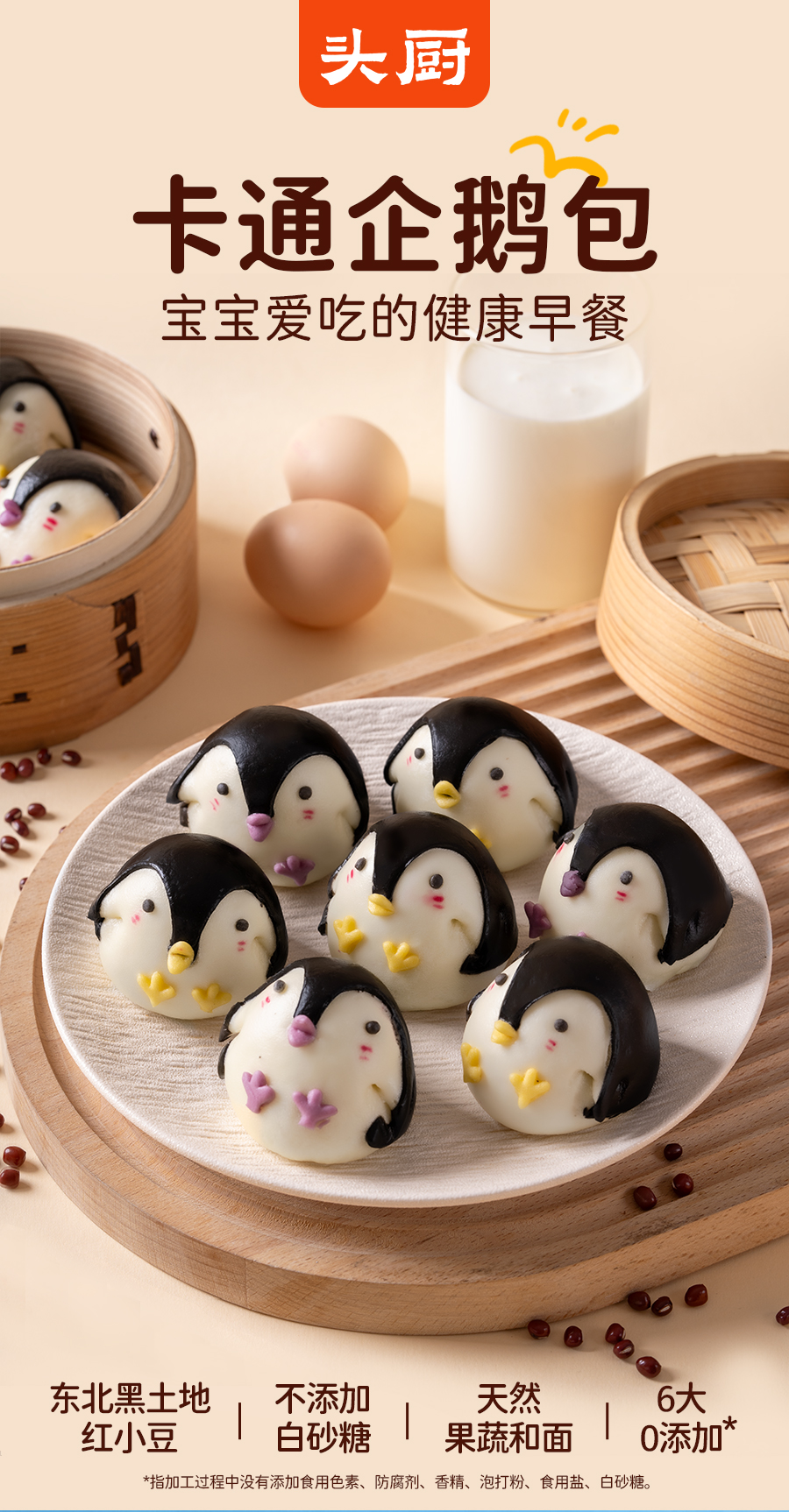 头厨卡通企鹅包子豆沙包天然果蔬泥馒头趣味儿童宝宝早餐半成品