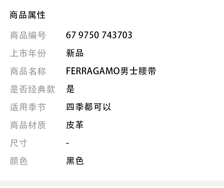 【二】FERRAGAMO 菲拉格慕 可调式GANCINI皮带 男士腰带 黑色 67 9750 743703