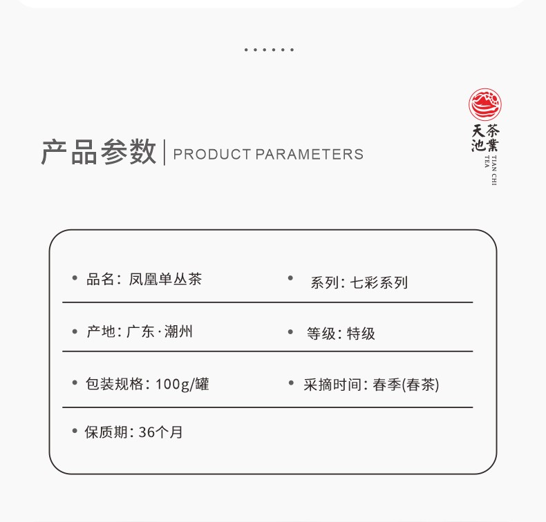 天池七彩系列 鸭屎香银花香潮州凤凰单丛茶乌龙茶青茶单枞100g