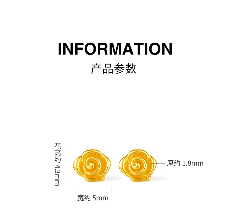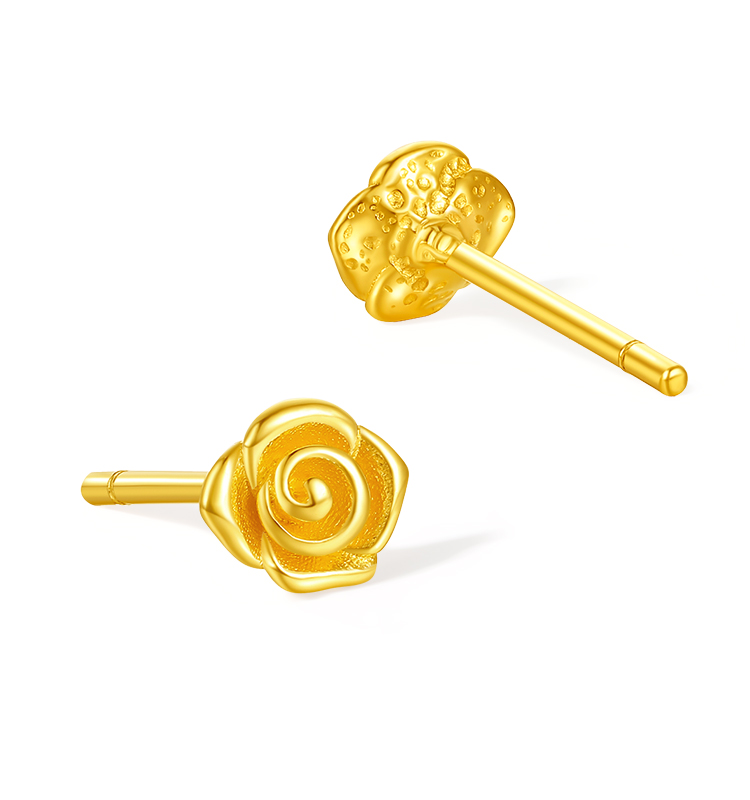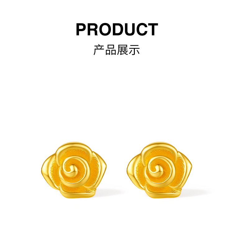 周六福5G足金耳饰绽放小巧玫瑰黄金计价女款耳钉七夕礼物