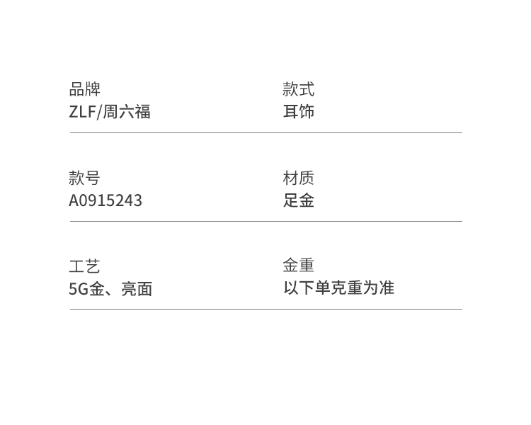 周六福黄金耳钉计价5G足金六芒星耳饰送女友甜酷少女 -第二代系列