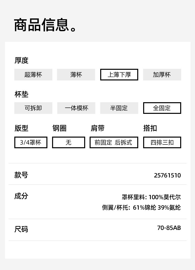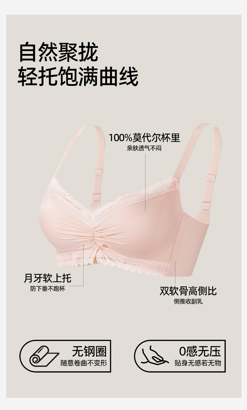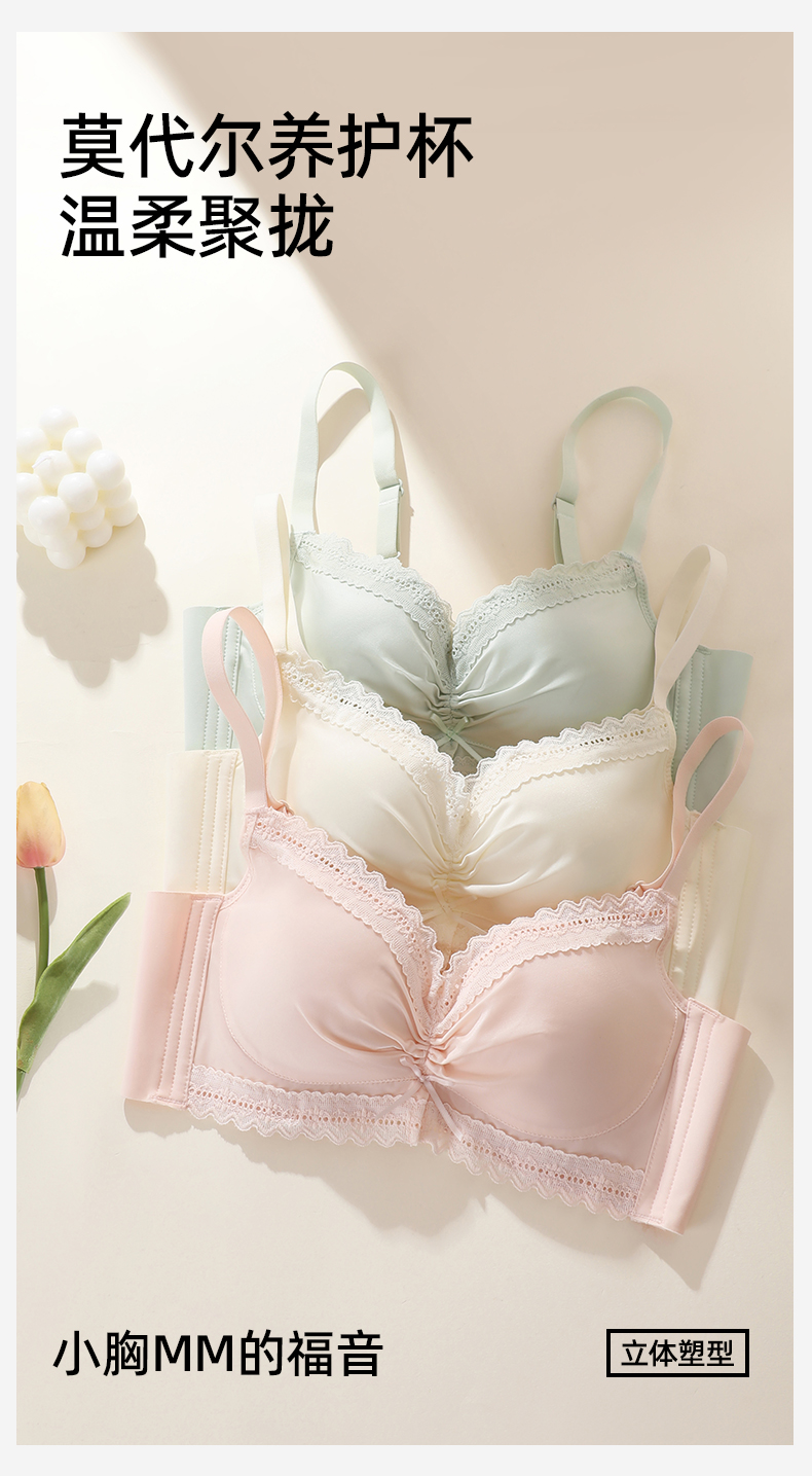 熳洁儿 法式缎面小胸聚拢文胸莫代尔养护杯百搭光面25761510