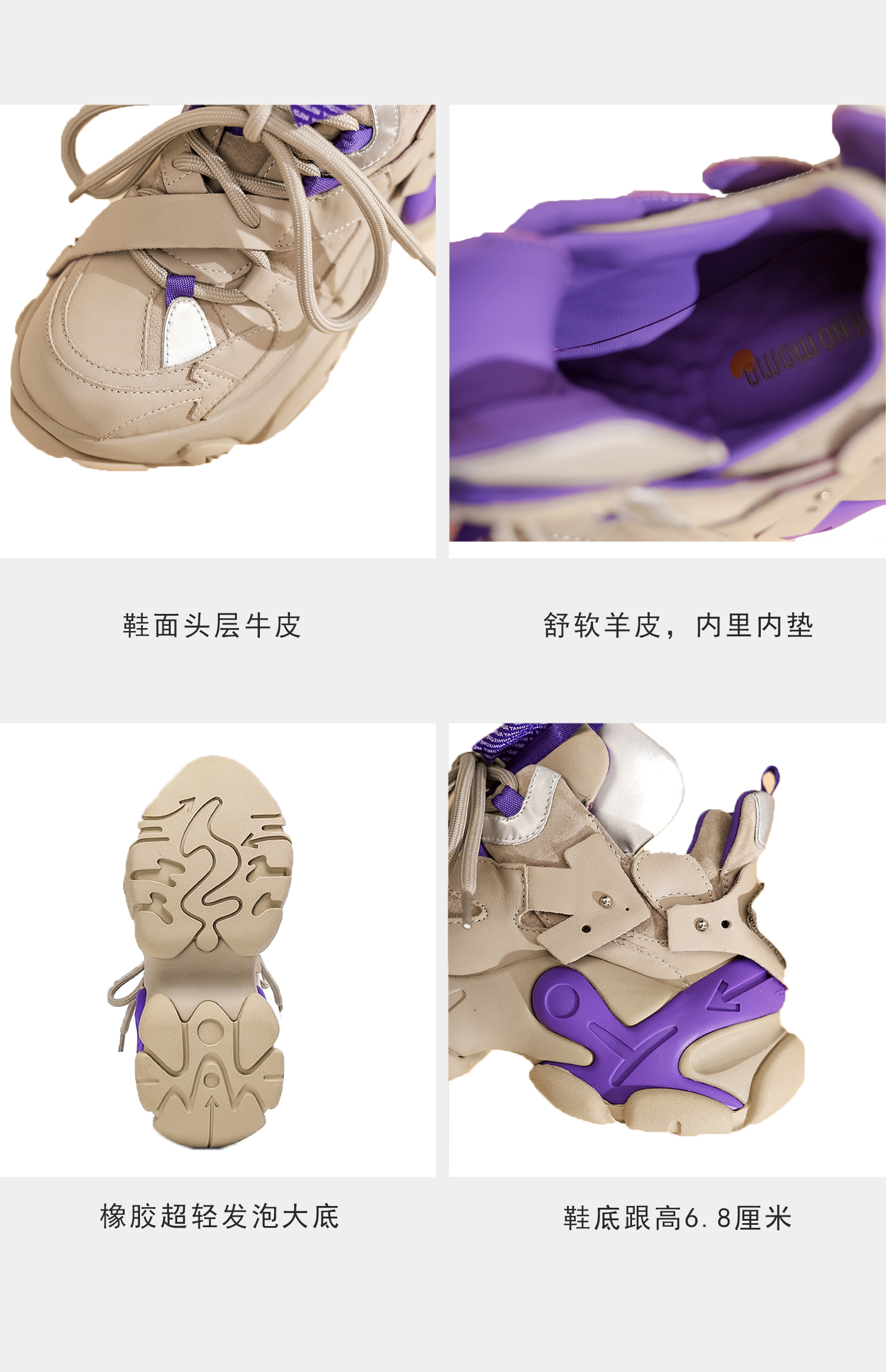 nekomomo2023年春季新款商场同款牛皮超轻厚底老爹鞋休闲运动鞋女M22CM37361